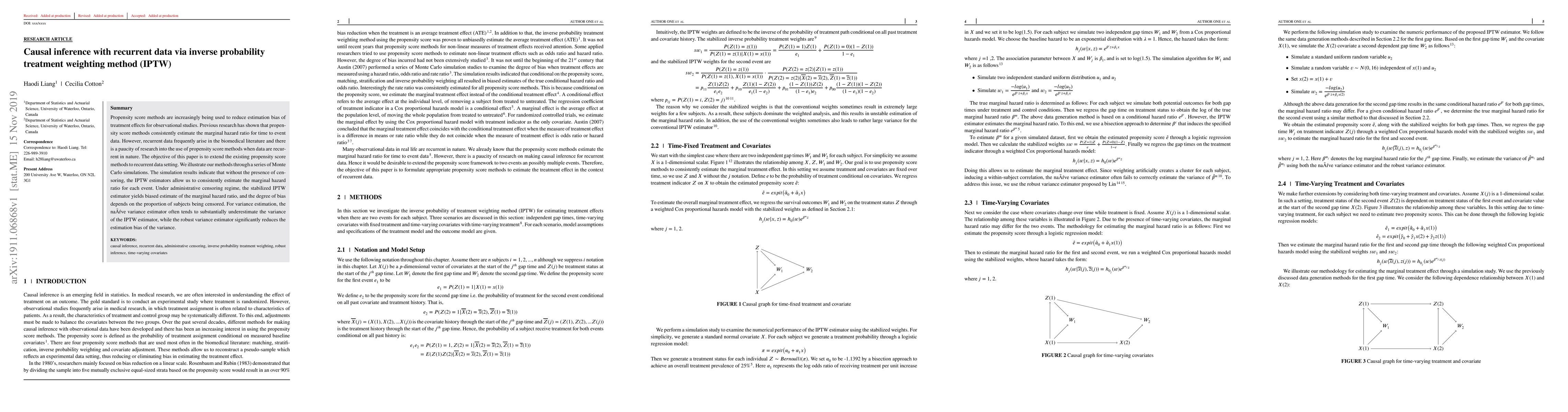 Propensity score methods are increasingly being used to reduce estimation bias of treatment effects for observational studies. Previous research has shown that propensity score methods consistently estimate the marginal hazard ratio for time to event data. However, recurrent data frequently arise in the biomedical literature and there is a paucity of research into the use of propensity score methods when data are recurrent in nature. The objective of this paper is to extend the existing propensity score methods to recurrent data setting. We illustrate our methods through a series of Monte Carlo simulations. The simulation results indicate that without the presence of censoring, the IPTW estimators allow us to consistently estimate the marginal hazard ratio for each event. Under administrative censoring regime, the stabilized IPTW estimator yields biased estimate of the marginal hazard ratio, and the degree of bias depends on the proportion of subjects being censored. For variance estimation, the na\"ive variance estimator often tends to substantially underestimate the variance of the IPTW estimator, while the robust variance estimator significantly reduces the estimation bias of the variance.
