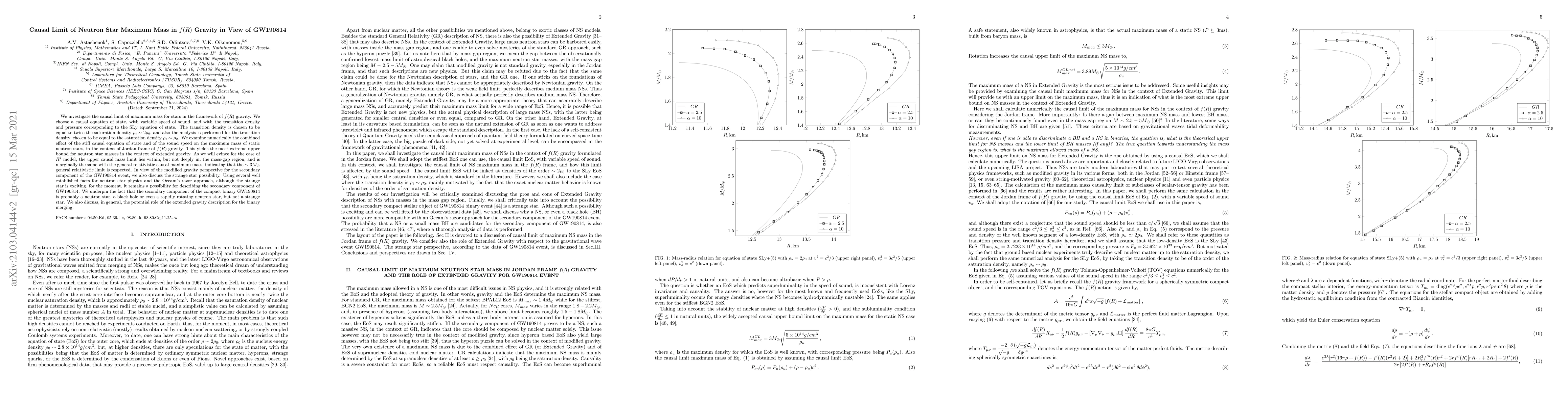 We investigate the causal limit of maximum mass for stars in the framework of$f(R)$ gravity. We choose a causal equation of state, with variable speed of sound, and with the transition density and pressure corresponding to the SLy equation of state. The transition density is chosen to be equal to twice the saturation density $\rho_t\sim 2\rho_0$, and also the analysis is performed for the transition density, chosen to be equal to the saturation density $\rho_t\sim \rho_0$. We examine numerically the combined effect of the stiff causal equation of state and of the sound speed on the maximum mass of static neutron stars, in the context of Jordan frame of $f(R)$ gravity. This yields the most extreme upper bound for neutron star masses in the context of extended gravity. As we will evince for the case of $R^2$ model, the upper causal mass limit lies within, but not deeply in, the mass-gap region, and is marginally the same with the general relativistic causal maximum mass, indicating that the $\sim 3M_{\odot}$ general relativistic limit is respected. In view of the modified gravity perspective for the secondary component of the GW190814 event, we also discuss the strange star possibility. Using several well established facts for neutron star physics and the Occam's razor approach, although the strange star is exciting, for the moment, it remains a possibility for describing the secondary component of GW190814. We underpin the fact that the secondary component of the compact binary GW190814 is probably a neutron star, a black hole or even a rapidly rotating neutron star, but not a strange star. We also discuss, in general, the potential role of the extended gravity description for the binary merging.