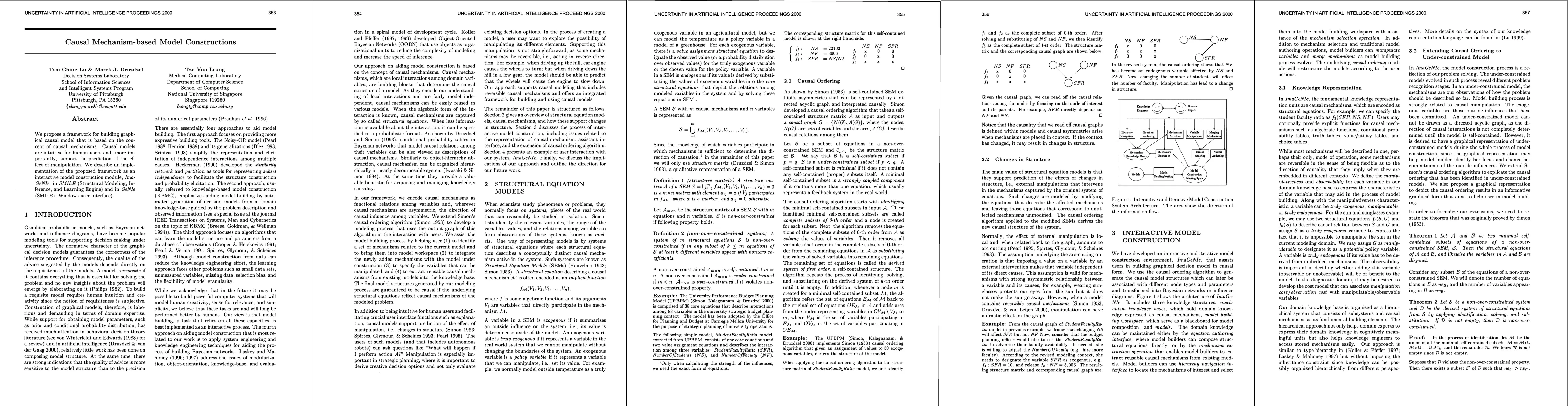 We propose a framework for building graphical causal model that is based on the concept of causal mechanisms. Causal models are intuitive for human users and, more importantly, support the prediction of the effect of manipulation. We describe an implementation of the proposed framework as an interactive model construction module, ImaGeNIe, in SMILE (Structural Modeling, Inference, and Learning Engine) and in GeNIe (SMILE's Windows user interface).