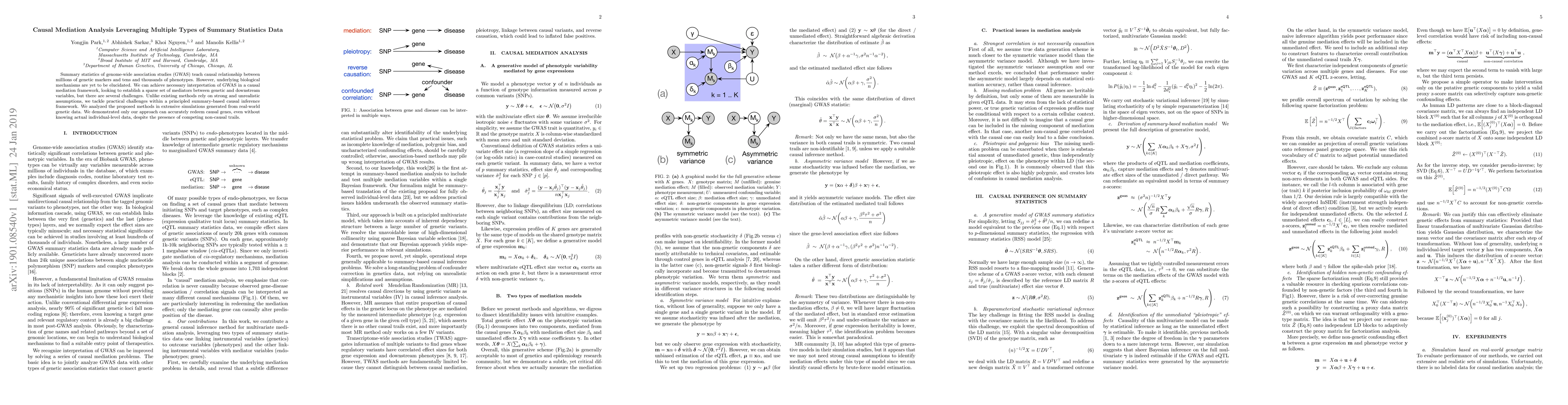 This paper proposes a novel causal mediation analysis method for interpreting genome-wide association study (GWAS) summary statistics, focusing on identifying key mediators without relying on strong assumptions. The authors demonstrate through simulations that their approach can accurately identify causal genes even when individual-level data is unavailable.