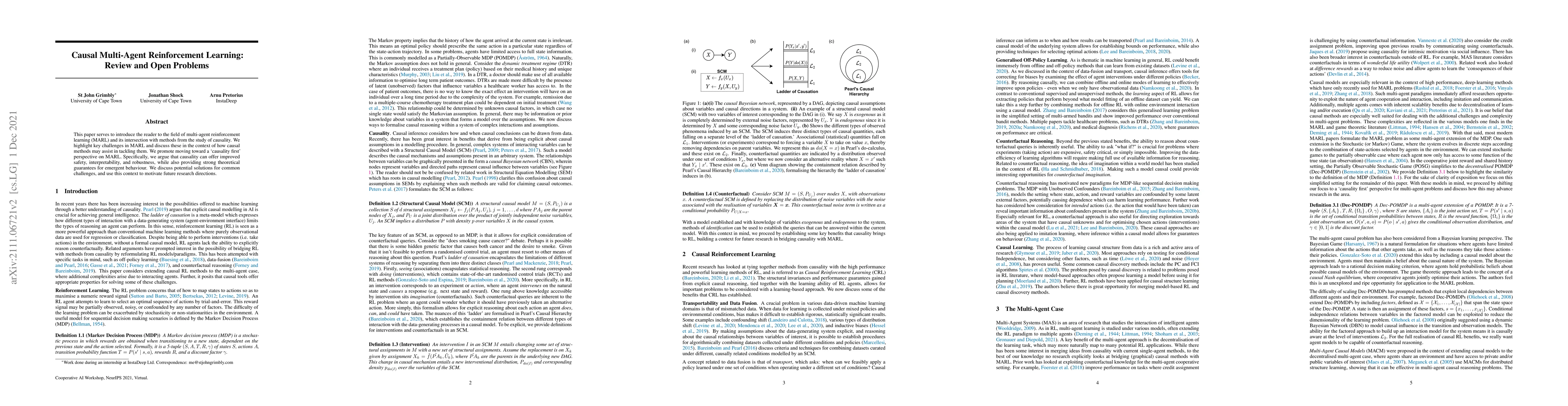 This paper reviews multi-agent reinforcement learning and its intersection with causality methods, arguing that a 'causality first' approach can improve safety, interpretability, and robustness in MARL.