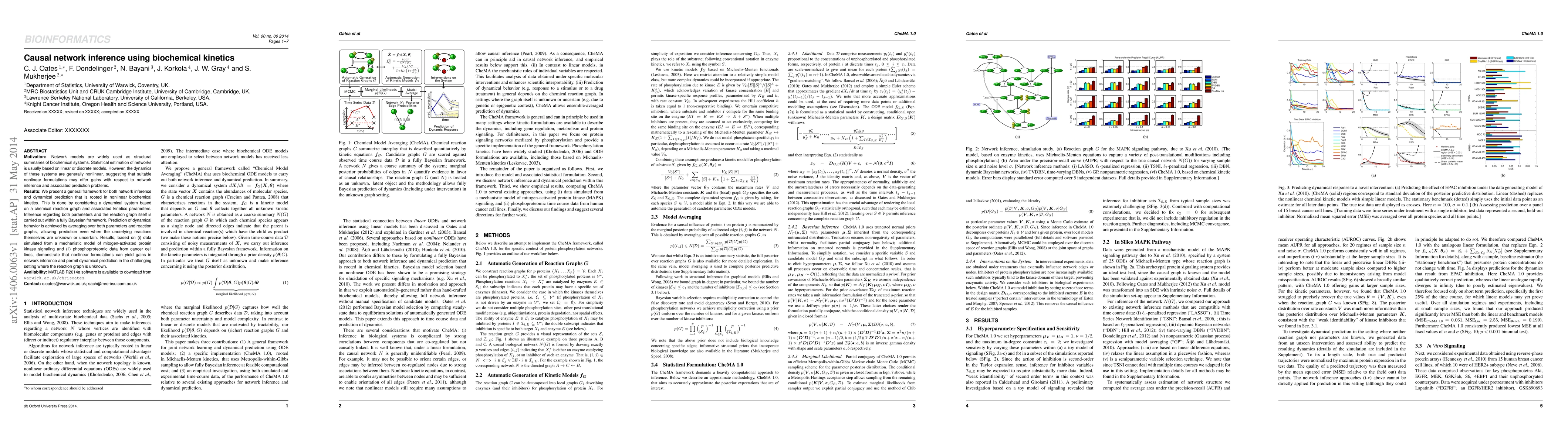 This work stands out by formulating a fully Bayesian approach to both network inference and dynamical prediction rooted in chemical kinetics, contrasting with previous methods that relied on linear or discrete models, and by automatically generating biochemical models rather than manually specifying candidate models.