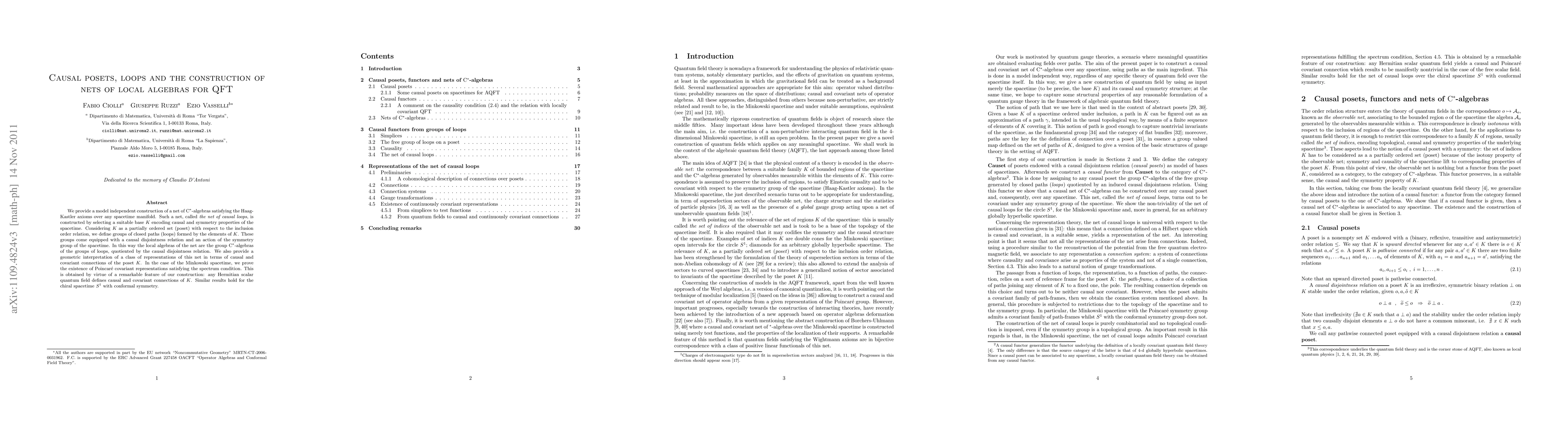 We provide a model independent construction of a net of C*-algebras satisfying the Haag-Kastler axioms over any spacetime manifold. Such a net, called the net of causal loops, is constructed by selecting a suitable base K encoding causal and symmetry properties of the spacetime. Considering K as a partially ordered set (poset) with respect to the inclusion order relation, we define groups of closed paths (loops) formed by the elements of K. These groups come equipped with a causal disjointness relation and an action of the symmetry group of the spacetime. In this way the local algebras of the net are the group C*-algebras of the groups of loops, quotiented by the causal disjointness relation. We also provide a geometric interpretation of a class of representations of this net in terms of causal and covariant connections of the poset K. In the case of the Minkowski spacetime, we prove the existence of Poincar\'e covariant representations satisfying the spectrum condition. This is obtained by virtue of a remarkable feature of our construction: any Hermitian scalar quantum field defines causal and covariant connections of K. Similar results hold for the chiral spacetime $S^1$ with conformal symmetry.