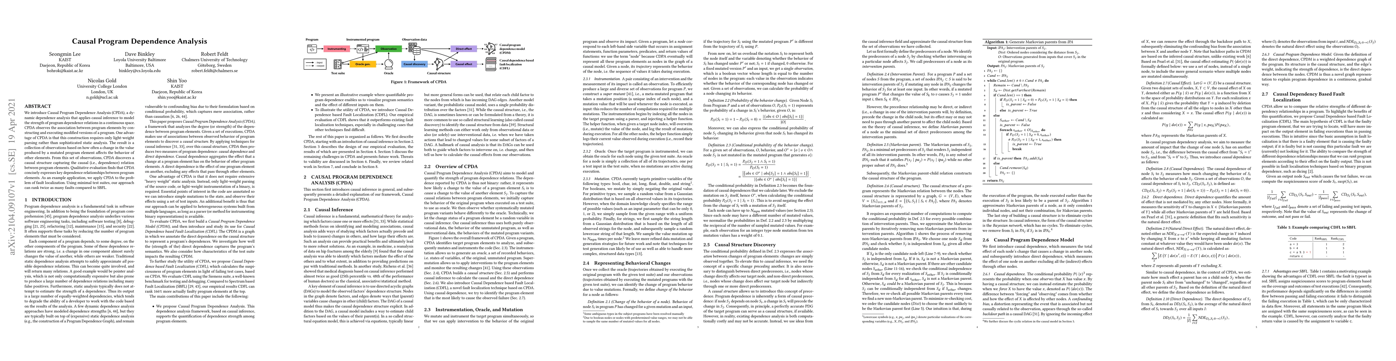 We introduce Causal Program Dependence Analysis (CPDA), a dynamic dependence analysis that applies causal inference to model the strength of program dependence relations in a continuous space. CPDA observes the association between program elements by constructing and executing modified versions of a program. One advantage of CPDA is that this construction requires only light-weight parsing rather than sophisticated static analysis. The result is a collection of observations based on how often a change in the value produced by a mutated program element affects the behavior of other elements. From this set of observations, CPDA discovers a causal structure capturing the causal (i.e., dependence) relation between program elements. Qualitative evaluation finds that CPDA concisely expresses key dependence relationships between program elements. As an example application, we apply CPDA to the problem of fault localization. Using minimal test suites, our approach can rank twice as many faults compared to SBFL.