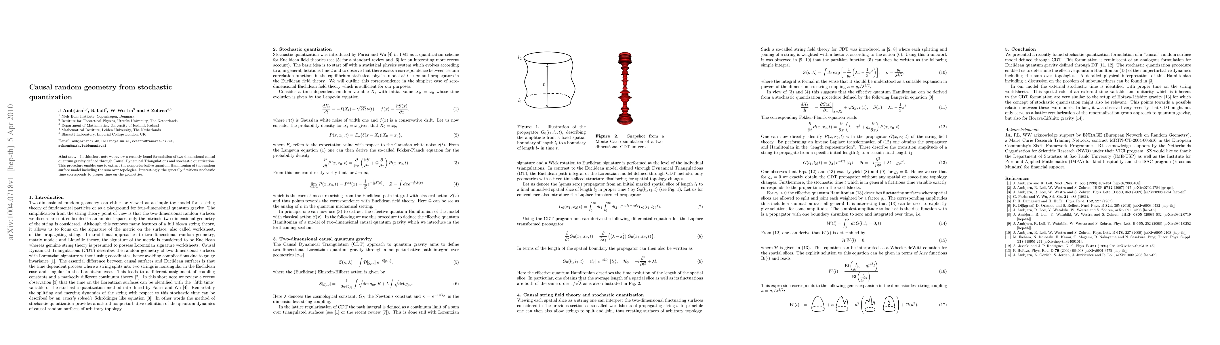 Researchers developed a new method to define two-dimensional causal quantum gravity using Causal Dynamical Triangulations and stochastic quantization, enabling the extraction of the non-perturbative quantum Hamiltonian from a random surface model.