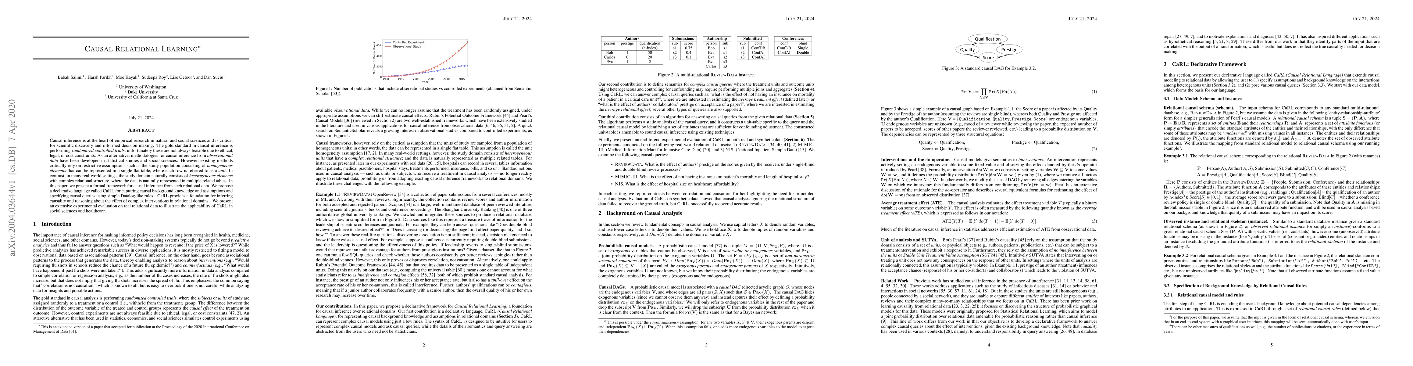 This paper introduces a framework for causal inference from relational data using a declarative language called CaRL, which allows for the specification of causal queries through simple Datalog-like rules, addressing the limitations of existing methods that assume homogeneous data. The proposed approach is validated through experiments on real relational datasets in social sciences and healthcare.