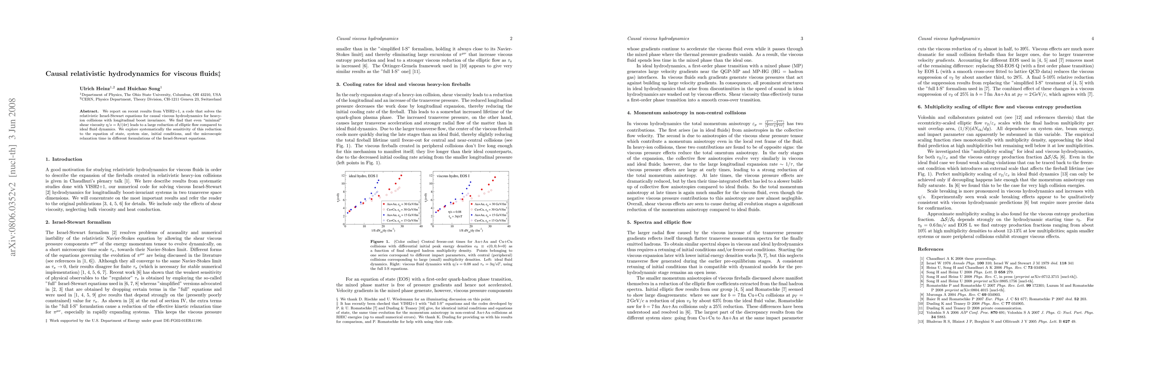 We report on recent results from VISH2+1, a code that solves the relativistic Israel-Stewart equations for causal viscous hydrodynamics for heavy-ion collisions with longitudinal boost invariance. We find that even ``minimal'' shear viscosity eta/s=hbar/(4pi) leads to a large reduction of elliptic flow compared to ideal fluid dynamics. We explore systematically the sensitivity of this reduction to the equation of state, system size, initial conditions, and the microscopic relaxation time in different formulations of the Israel-Stewart equations.