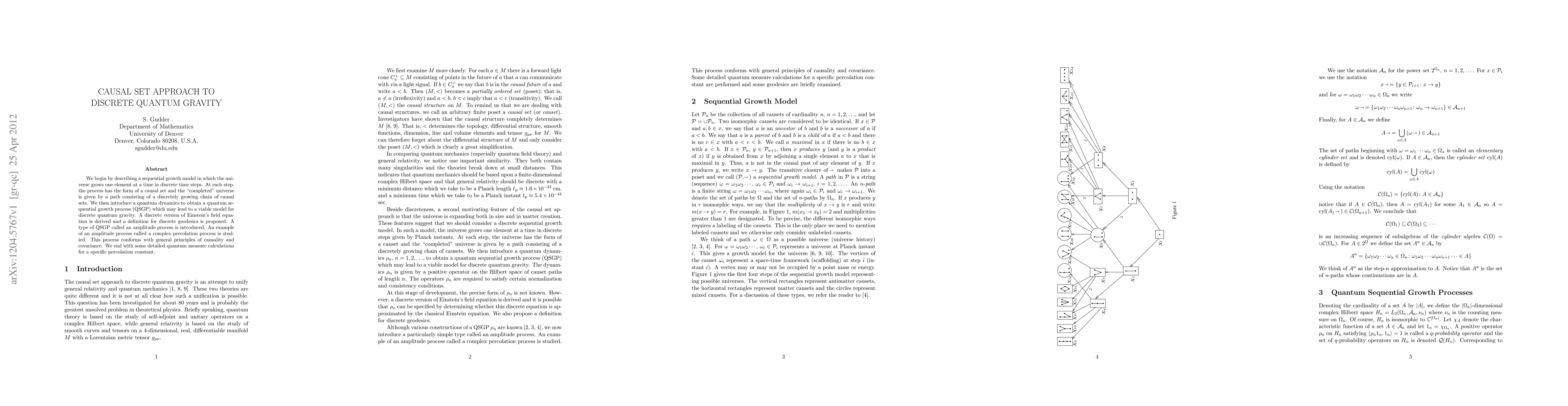 We begin by describing a sequential growth model in which the universe grows one element at a time in discrete time steps. At each step, the process has the form of a causal set and the "completed" universe is given by a path consisting of a discretely growing chain of causal sets. We then introduce a quantum dynamics to obtain a quantum sequential growth process (QSGP) which may lead to a viable model for discrete quantum gravity. A discrete version of Einstein's field equation is derived and a definition for discrete geodesics is proposed. A type of QSGP called an amplitude process is introduced. An example of an amplitude process called a complex percolation process is studied. This process conforms with general principles of causality and covariance. We end with some detailed quantum measure calculations for a specific percolation constant.