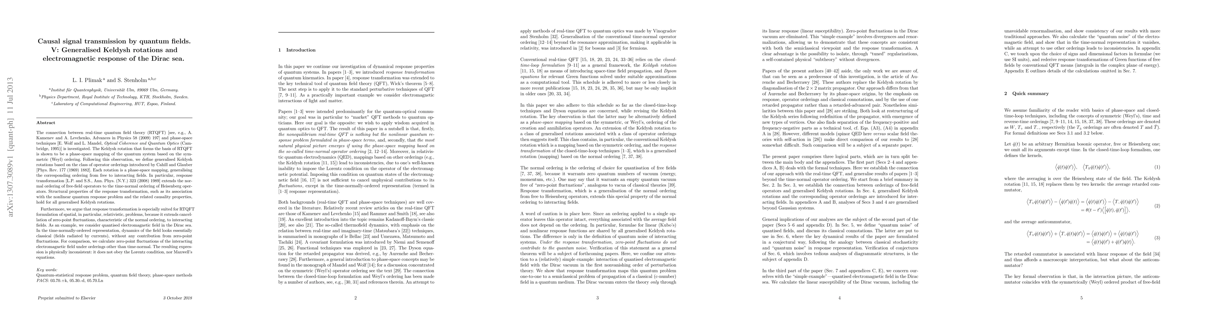 This paper investigates the relationship between real-time quantum field theory and phase-space techniques, defining generalised Keldysh rotations based on operator orderings. It demonstrates that response transformation, which extends normal ordering to interacting fields, effectively cancels zero-point fluctuations, leading to a classical-like description of the quantised electromagnetic field in the Dirac sea.