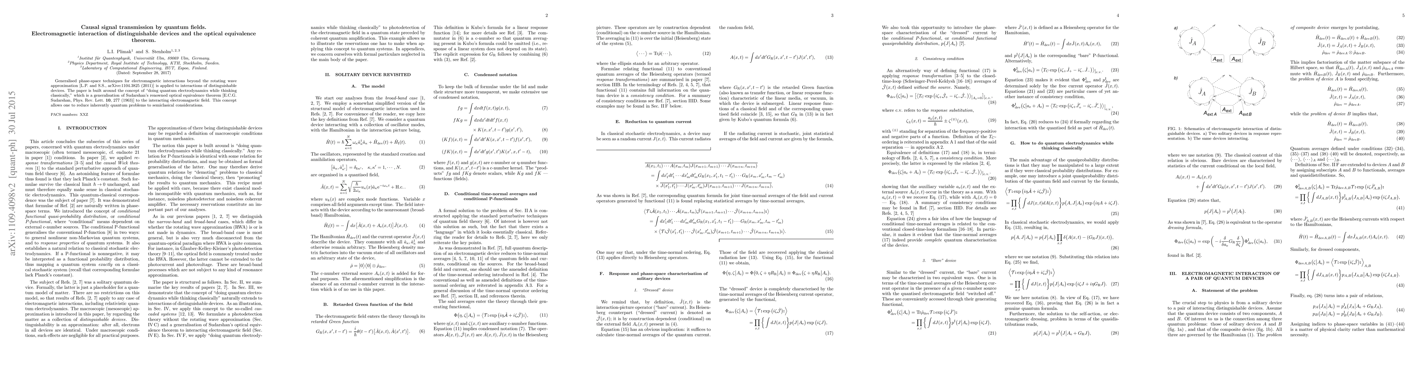This paper applies generalised phase-space techniques to electromagnetic interactions, extending the optical equivalence theorem to quantum fields. It demonstrates how quantum electrodynamics can be approached using semiclassical methods for distinguishable devices.