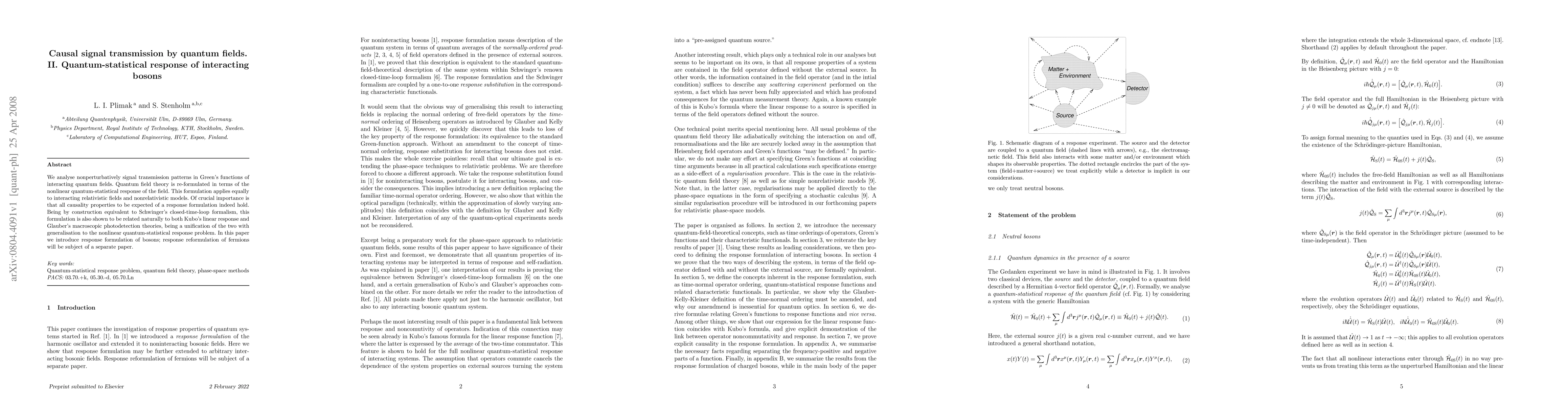 This paper explores nonperturbative signal transmission in quantum fields through a new quantum-statistical response formulation, ensuring causality. This approach, equivalent to Schwinger's closed-time-loop formalism, unifies linear and nonlinear response theories and applies to both relativistic and nonrelativistic models, focusing here on interacting bosons.