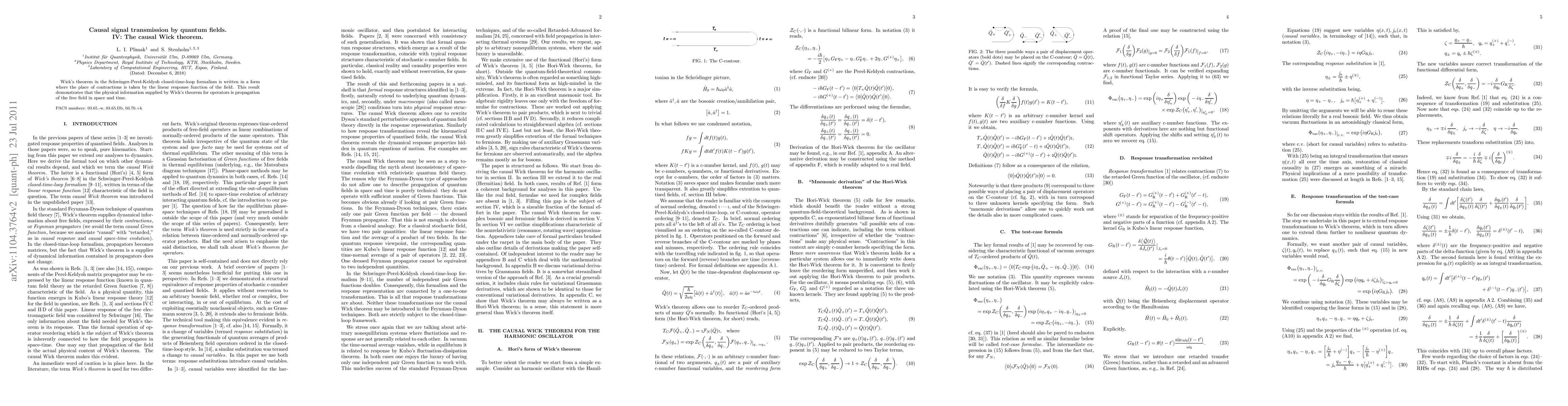 Wick's theorem in the Schwinger-Perel-Keldysh closed-time-loop formalism is written in a form where the place of contractions is taken by the linear response function of the field. This result demonstrates that the physical information supplied by Wick's theorem for operators is propagation of the free field in space and time.
