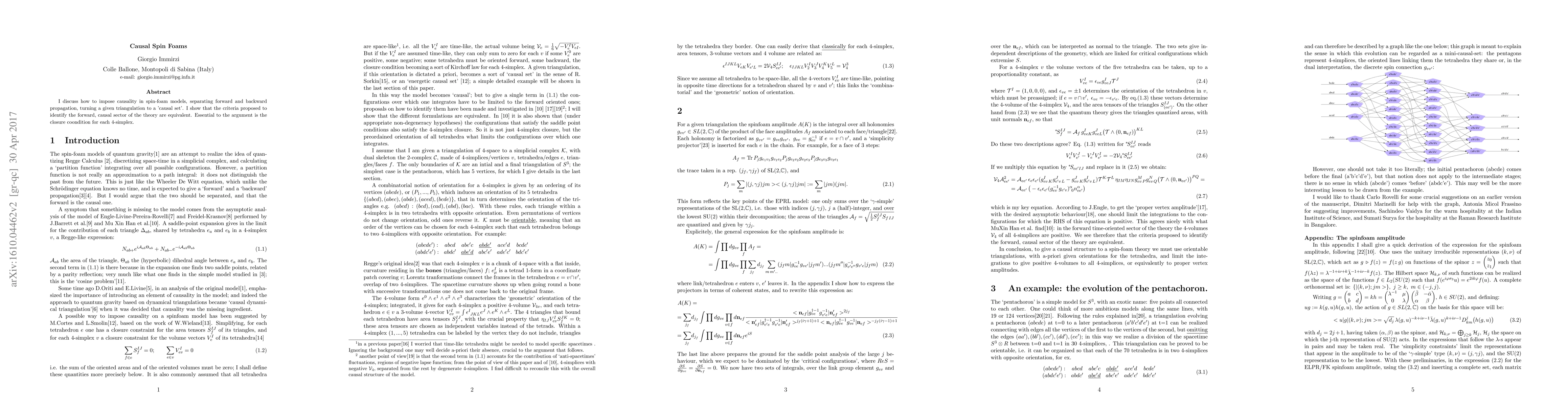I discuss how to impose causality on spin-foam models, separating forward and backward propagation, turning a given triangulation to a 'causal set', and giving asymptotically the exponential of the Regge action, not a cosine. I show the equivalence of the prescriptions which have been proposed to achieve this. Essential to the argument is the closure condition for the 4-simplices, all made of space-like tetrahedra.