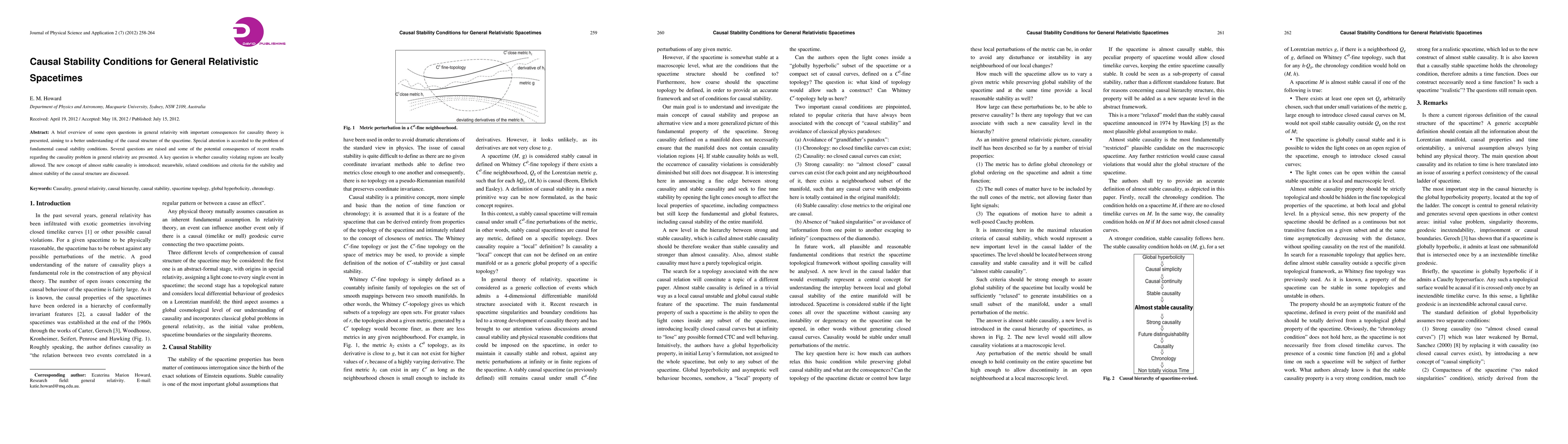 This paper explores open questions in general relativity concerning causal stability conditions and the causal structure of spacetime, introducing the concept of almost stable causality, and discusses criteria for the stability and almost stability of causal structures. It raises the question of whether causality-violating regions can be locally permissible.