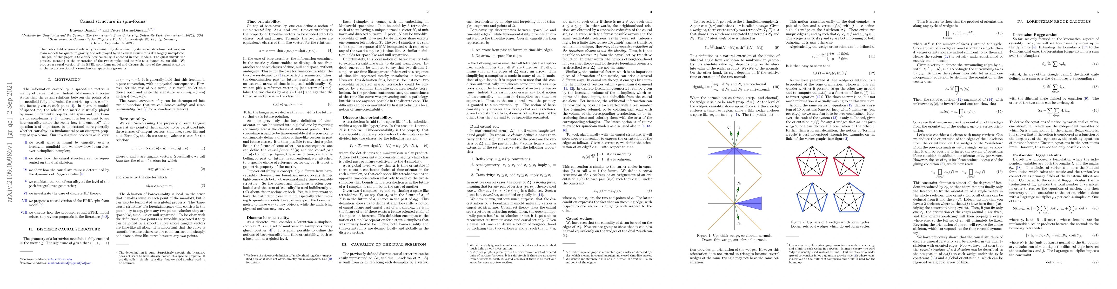 This paper explores how causality is encoded in spin-foam models for quantum gravity, proposing a causal version of the EPRL model and discussing the role of the orientation of the two-complex as a dynamical variable in reconstructing semiclassical spacetime geometry.