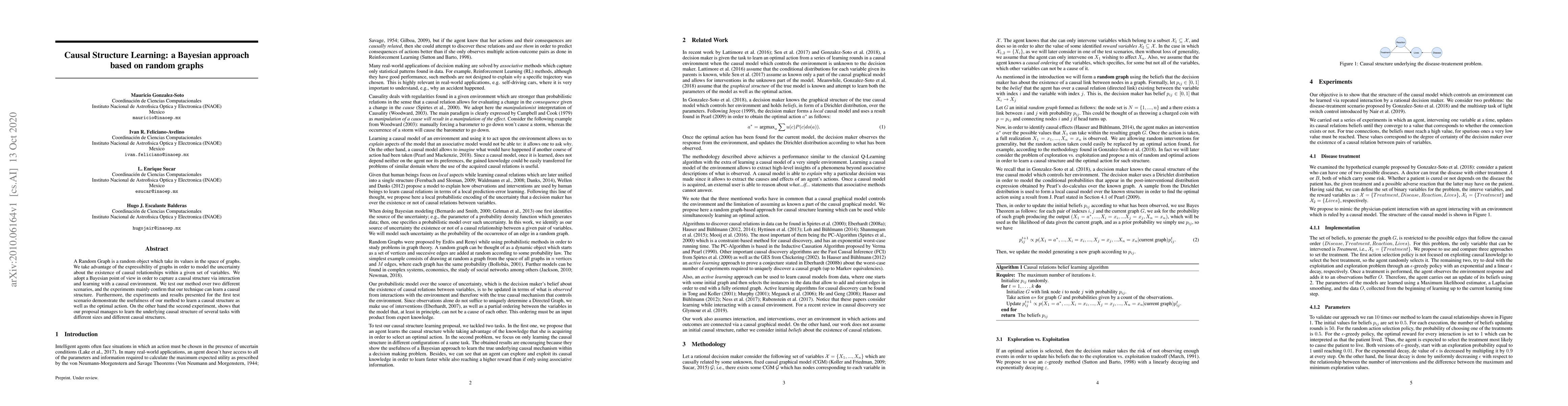 This paper proposes a Bayesian approach using random graphs to model uncertainty in causal relationships among variables. The method effectively learns causal structures and optimal actions through interaction with a causal environment. Experiments across two scenarios demonstrate its capability to learn causal structures of varying sizes and complexities.