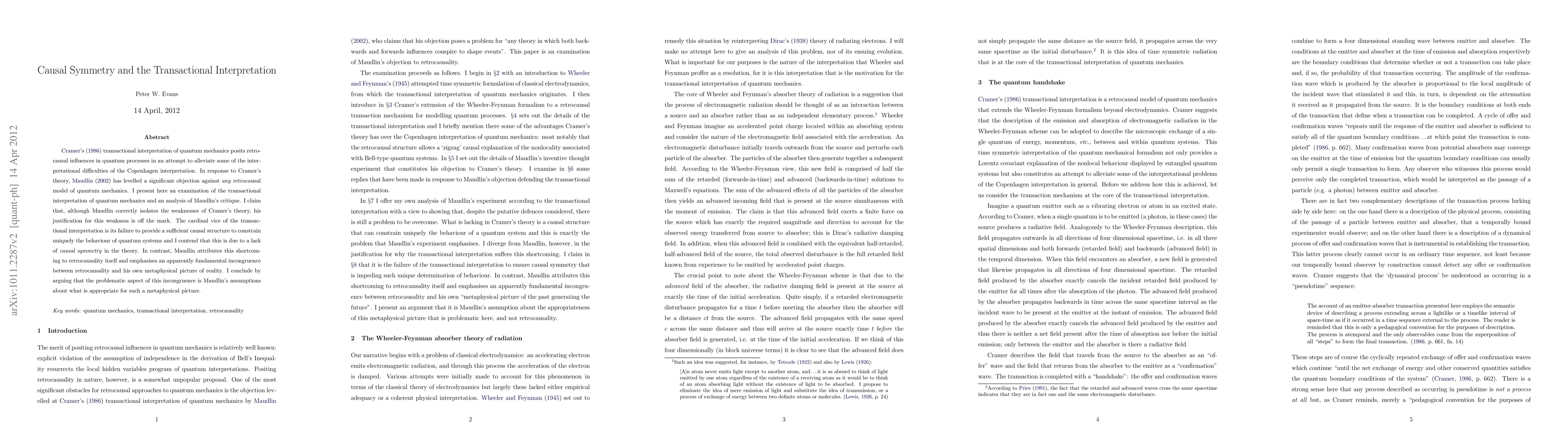 This paper examines the transactional interpretation of quantum mechanics by Cramer and critiques Maudlin's objection to retrocausality, arguing that the theory's failure to provide a unique causal structure stems from a lack of causal symmetry rather than retrocausality itself. The author contends that Maudlin's critique is misguided due to his inappropriate metaphysical assumptions.