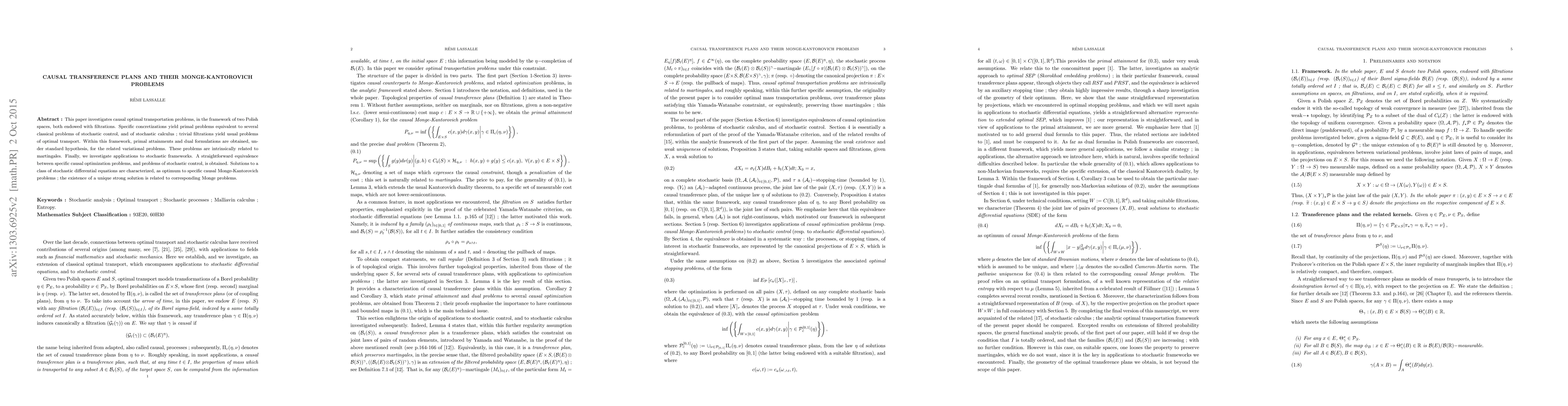 The paper investigates causal optimal transportation problems within the framework of two Polish spaces, both endowed with filtrations. It establishes connections to stochastic control and calculus problems, showing that trivial filtrations reduce to classical optimal transport problems.
