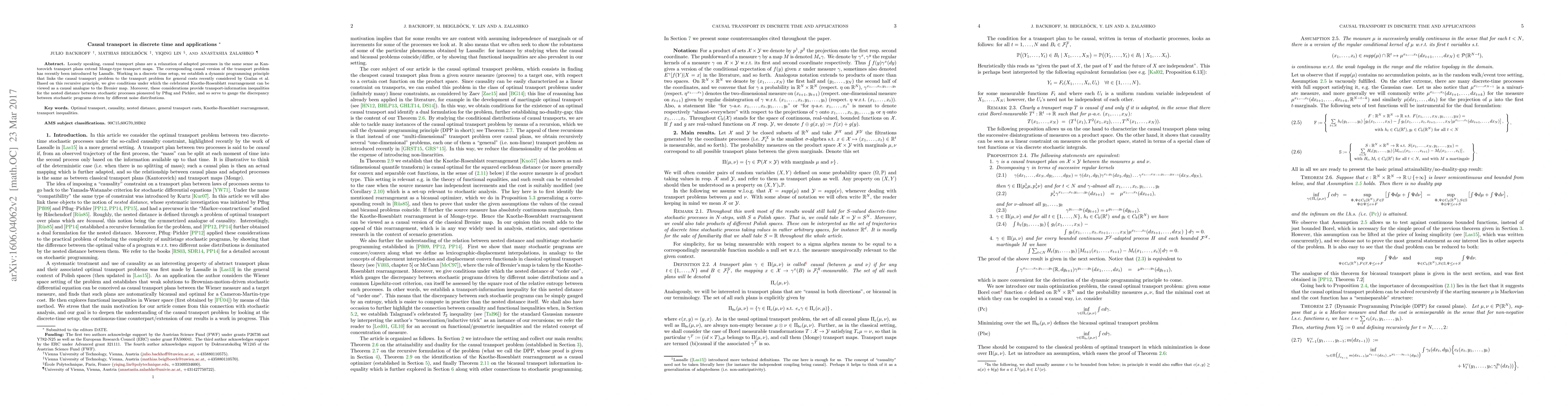 Loosely speaking, causal transport plans are a relaxation of adapted processes in the same sense as Kantorovich transport plans extend Monge-type transport maps. The corresponding causal version of the transport problem has recently been introduced by Lassalle. Working in a discrete time setup, we establish a dynamic programming principle that links the causal transport problem to the transport problem for general costs recently considered by Gozlan et al. Based on this recursive principle, we give conditions under which the celebrated Knothe-Rosenblatt rearrangement can be viewed as a causal analogue to the Brenier's map. Moreover, these considerations provide transport-information inequalities for the nested distance between stochastic processes pioneered by Pflug and Pichler, and so serve to gauge the discrepancy between stochastic programs driven by different noise distributions.