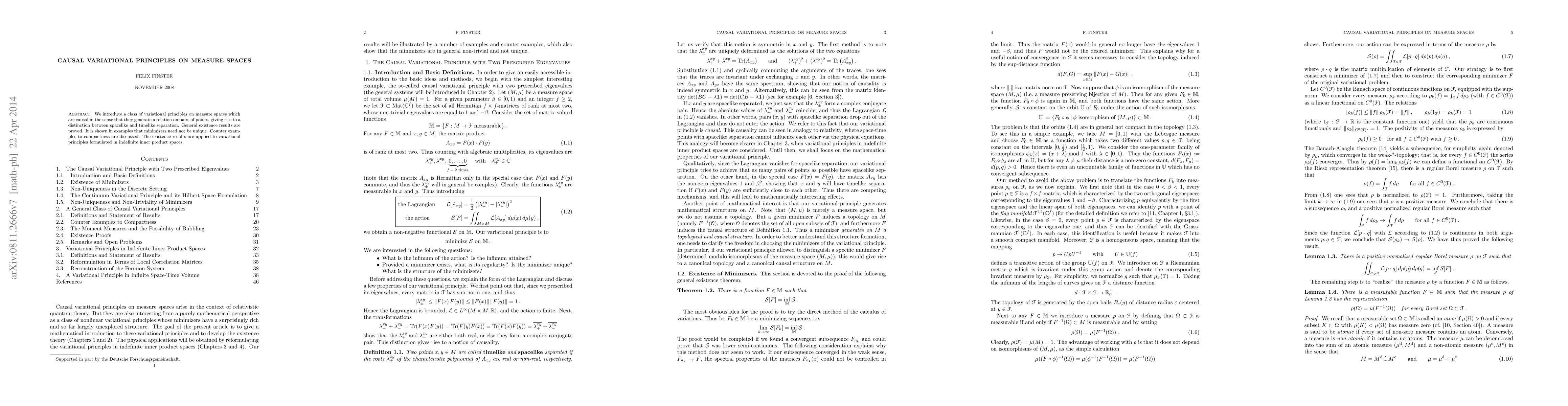 This paper introduces causal variational principles on measure spaces that distinguish spacelike and timelike separations, proving general existence results. It also discusses non-uniqueness of minimizers and counterexamples to compactness, applying these principles to variational principles in indefinite inner product spaces.
