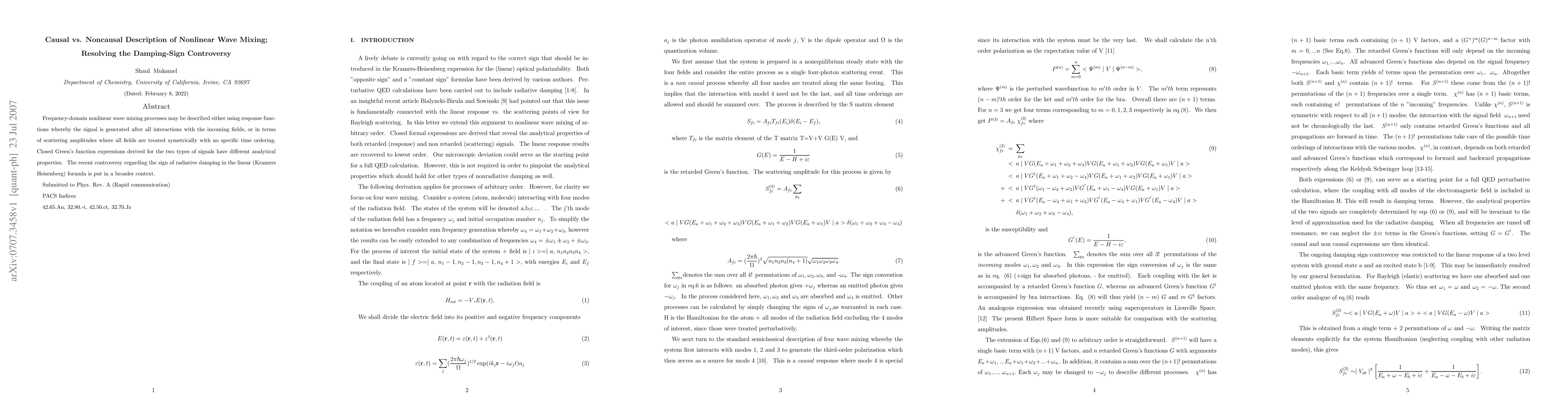Frequency-domain nonlinear wave mixing processes may be described either using response functions whereby the signal is generated after all interactions with the incoming fields, or in terms of scattering amplitudes where all fields are treated symetrically with no specific time ordering. Closed Green's function expressions derived for the two types of signals have different analytical properties. The recent controversy regarding the sign of radiative damping in the linear (Kramers Heisenberg) formula is put in a broader context.