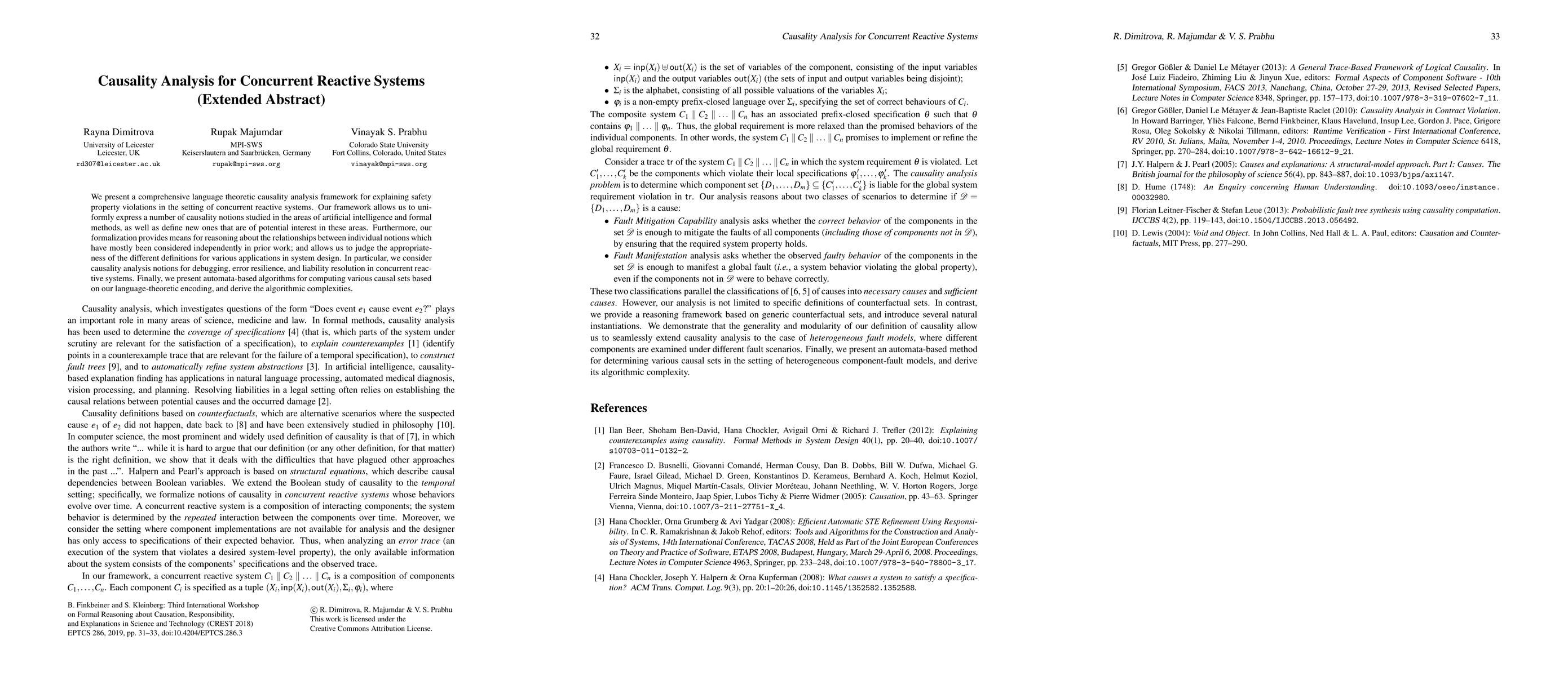 This paper introduces a language theoretic framework for causality analysis in concurrent reactive systems, enabling the expression and comparison of various causality notions for safety property violations. It also presents algorithms for computing causal sets and discusses their complexities.