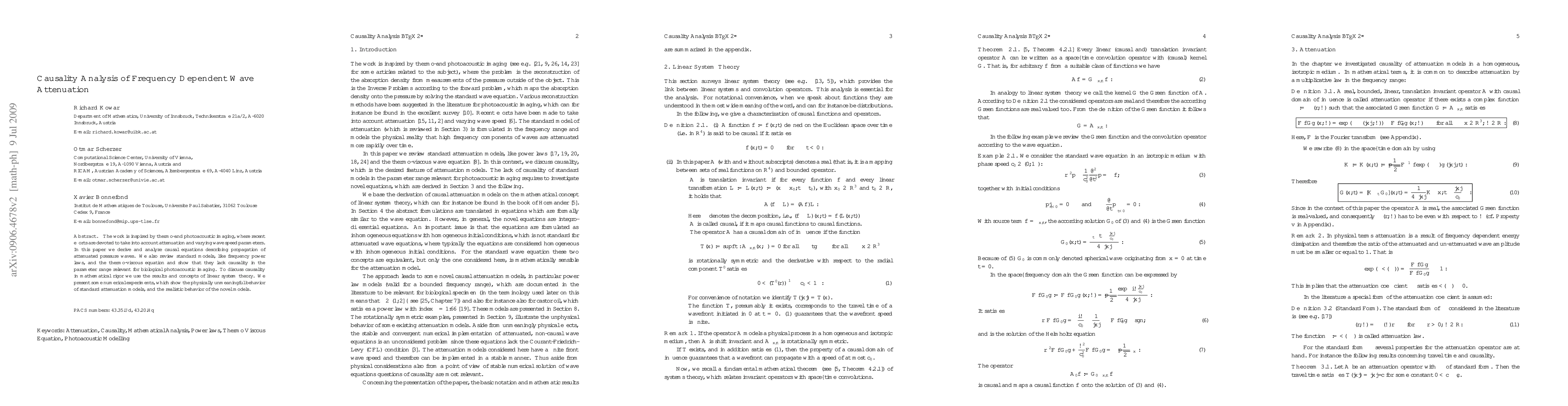 The work is inspired by thermo-and photoacoustic imaging, where recent efforts are devoted to take into account attenuation and varying wave speed parameters. In this paper we derive and analyze causal equations describing propagation of attenuated pressure waves. We also review standard models, like frequency power laws, and the thermo-viscous equation and show that they lack causality in the parameter range relevant for biological photoacoustic imaging. To discuss causality in mathematical rigor we use the results and concepts of linear system theory. We present some numerical experiments, which show the physically unmeaningful behavior of standard attenuation models, and the realistic behavior of the novel models.