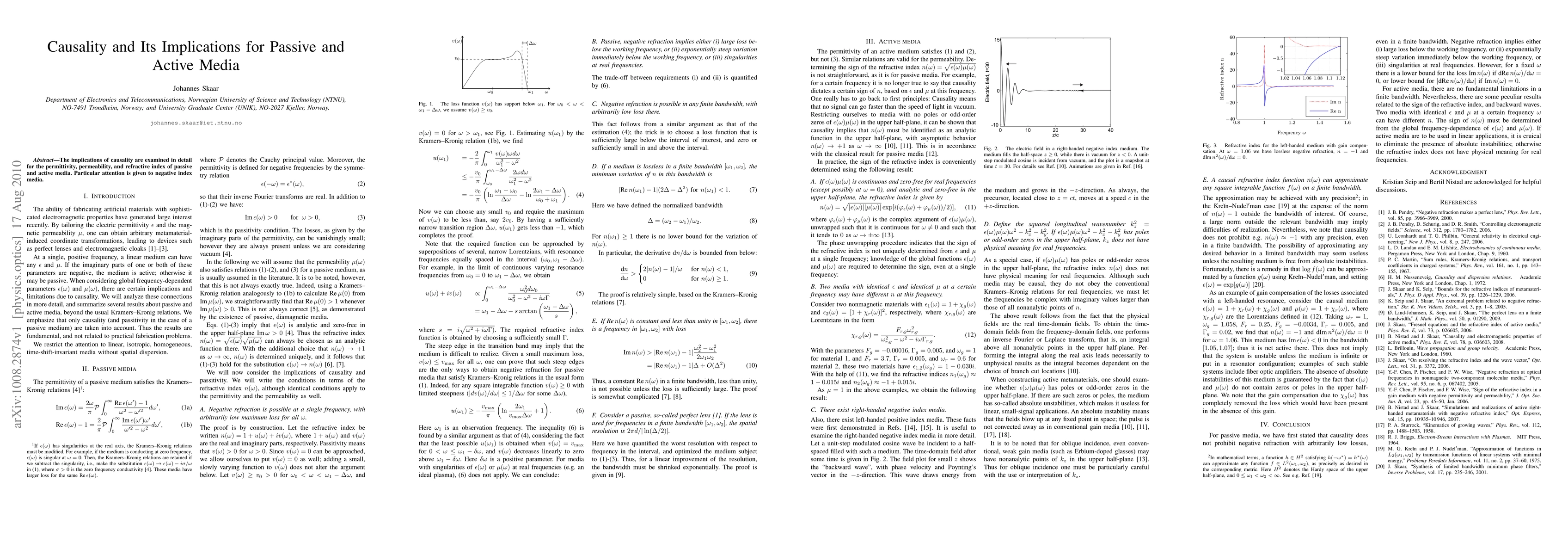 The implications of causality are examined in detail for the permittivity, permeability, and refractive index of passive and active media. Particular attention is given to negative index media.