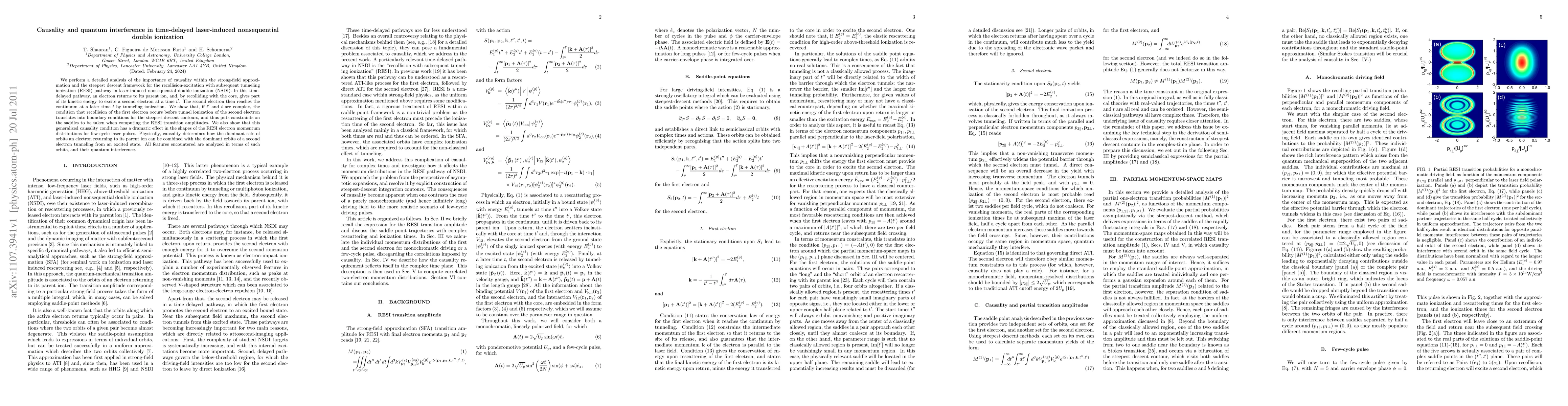 We perform a detailed analysis of the importance of causality within the strong-field approximation and the steepest descent framework for the recollision-excitation with subsequent tunneling ionization (RESI) pathway in laser-induced nonsequential double ionization (NSDI). In this time-delayed pathway, an electron returns to its parent ion, and, by recolliding with the core, gives part of its kinetic energy to excite a second electron at a time $t^{\prime}$. The second electron then reaches the continuum at a later time $t$ by tunneling ionization. We show that, if $t^{\prime}$ and $t$ are complex, the condition that recollision of the first electron occurs before tunnel ionization of the second electron translates into boundary conditions for the steepest-descent contours, and thus puts constraints on the saddles to be taken when computing the RESI transition amplitudes. We also show that this generalized causality condition has a dramatic effect in the shapes of the RESI electron momentum distributions for few-cycle laser pulses. Physically, causality determines how the dominant sets of orbits an electron returning to its parent ion can be combined with the dominant orbits of a second electron tunneling from an excited state. All features encountered are analyzed in terms of such orbits, and their quantum interference.