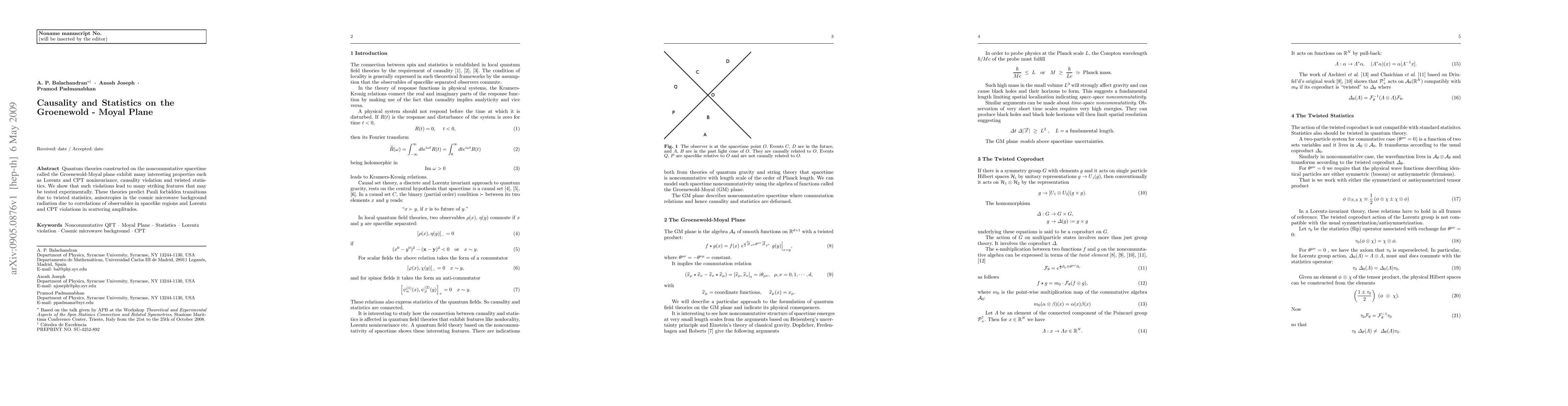 This paper explores quantum theories on the Groenewold-Moyal plane, highlighting noncommutative spacetime's effects like Lorentz and CPT noninvariance, causality violations, and twisted statistics, and suggests experimental tests for these phenomena.