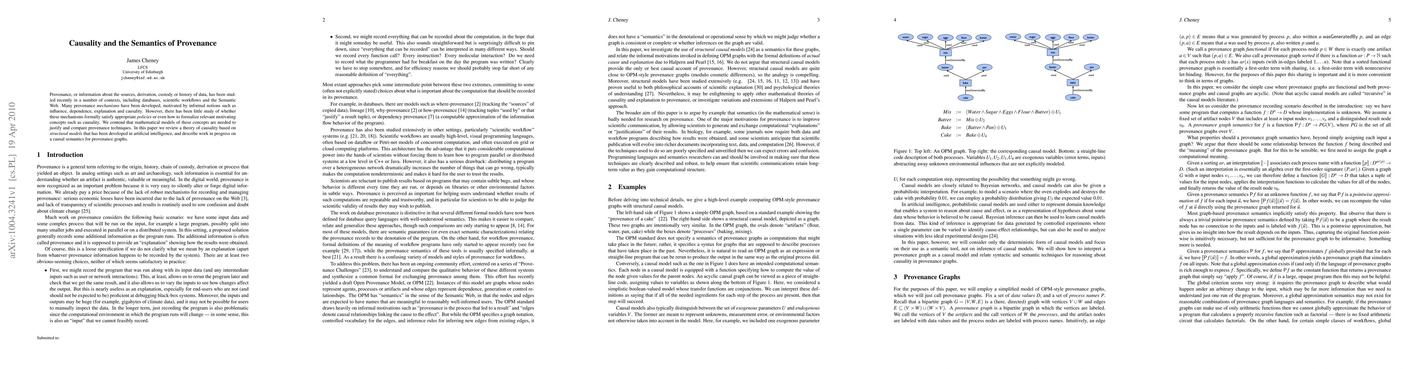 This paper reviews a causality theory based on structural models from artificial intelligence, aiming to formalize concepts like influence and causality in provenance mechanisms. It also outlines ongoing work on developing a causal semantics for provenance graphs to better justify and compare provenance techniques.