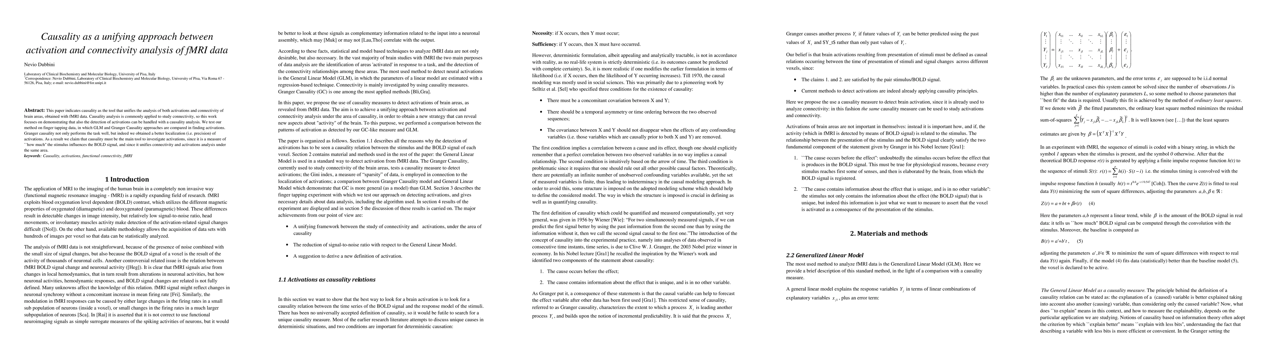 Researchers found that causality analysis can unify the study of brain activations and connectivity using fMRI data, offering better localization of activations than traditional methods.