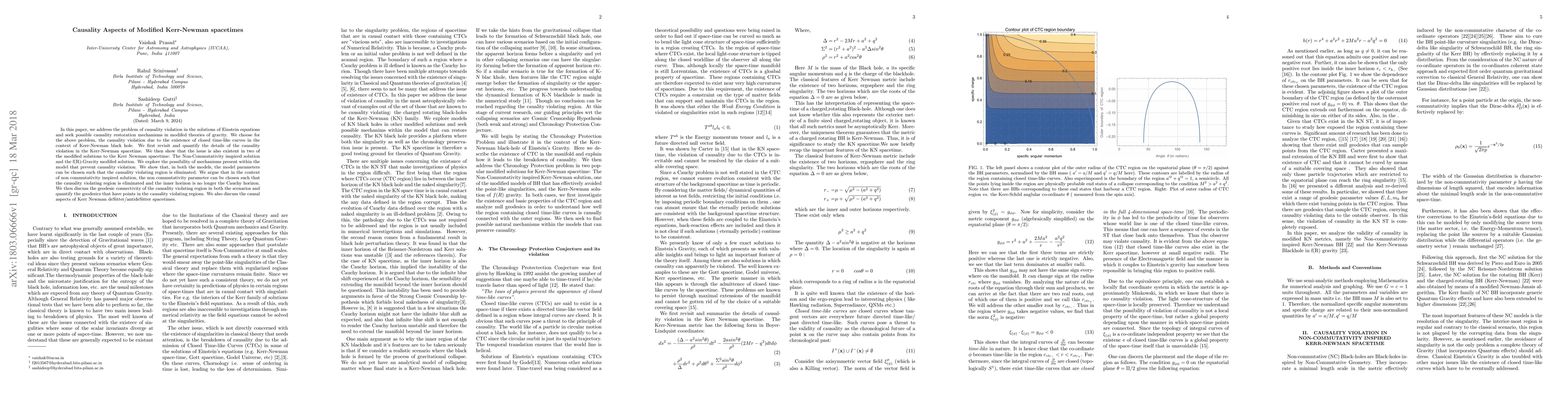 This paper investigates causality violations in modified Kerr-Newman spacetimes, particularly focusing on closed time-like curves. It demonstrates that both Non-Commutativity inspired and f(R)-Gravity modified solutions exhibit causality violations, but proposes parameter adjustments to eliminate these violations.