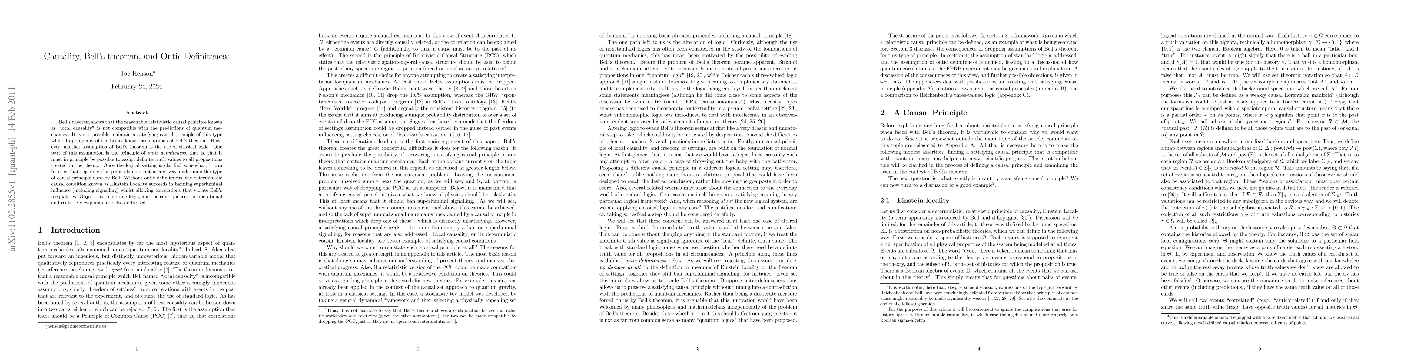 This paper explores the incompatibility between Bell's theorem and the principle of "local causality" in quantum mechanics, arguing that abandoning the assumption of "ontic definiteness" allows for a deterministic causal framework that still prohibits superluminal influence. It discusses the implications of changing the logical framework for operational and realistic interpretations of quantum theory.