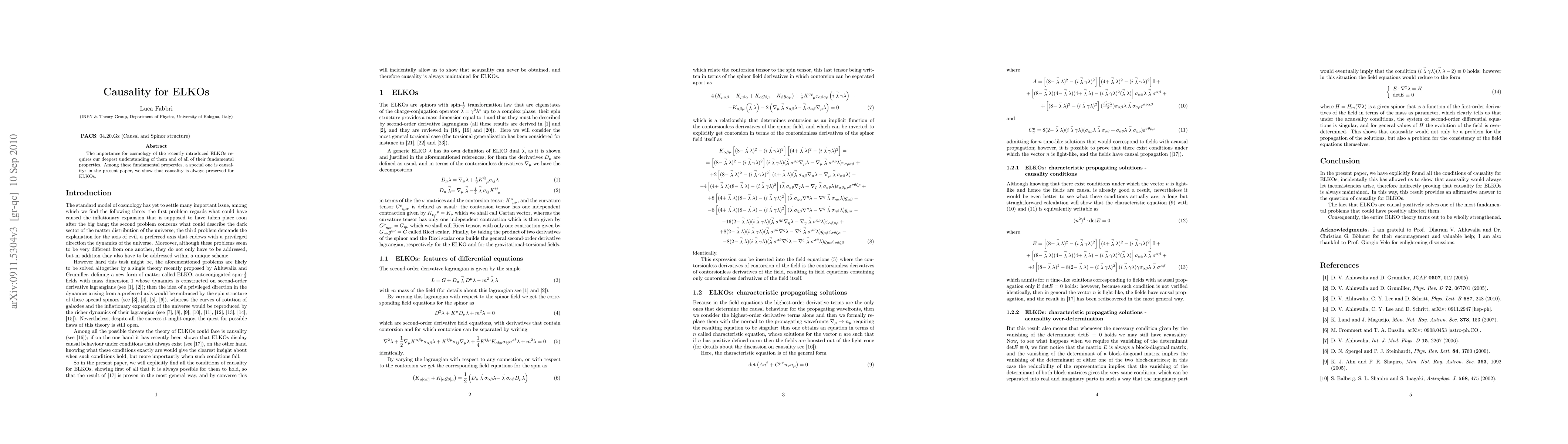 This paper demonstrates that causality is maintained for ELKOs, a crucial aspect for cosmological studies, ensuring that cause always precedes effect in these systems.