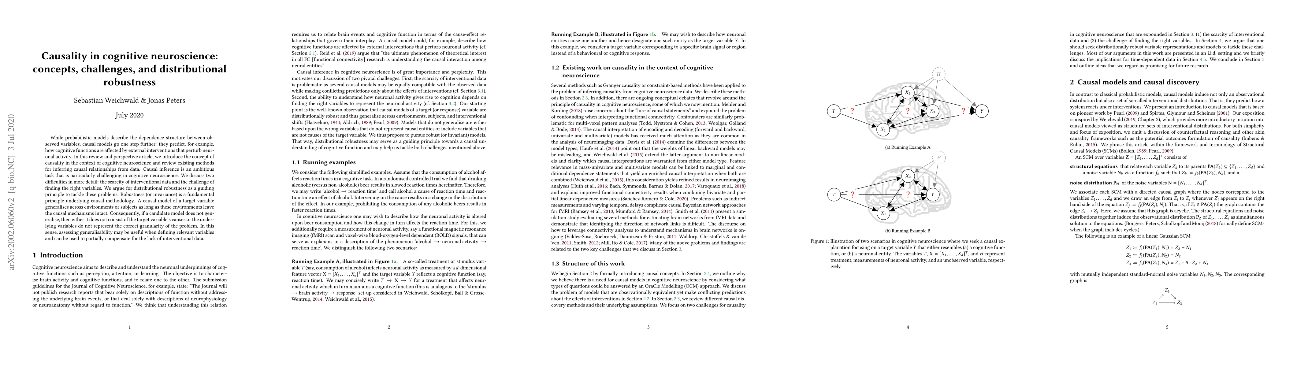 This paper explores causality in cognitive neuroscience, emphasizing the challenges of inferring causal relationships from data due to limited interventional data and variable selection issues. It advocates for distributional robustness as a principle to ensure generalizability and compensate for the lack of direct interventions.