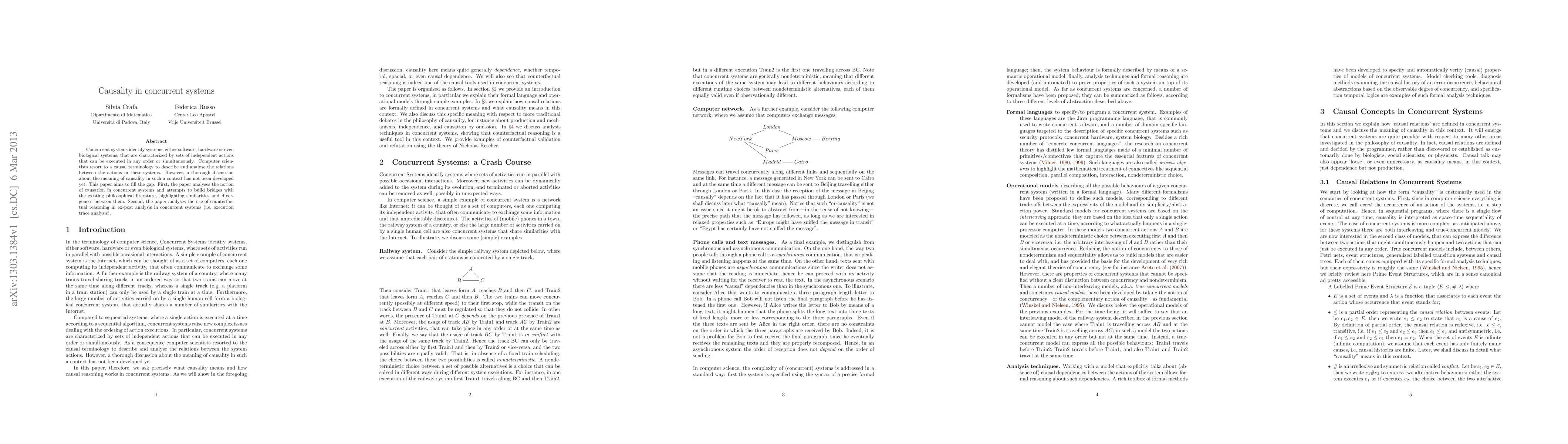 This paper explores the concept of causality in concurrent systems, comparing it with philosophical notions of causation and examining its application in counterfactual reasoning for execution trace analysis. It aims to bridge gaps in understanding causality within the context of systems where actions can occur independently and simultaneously.
