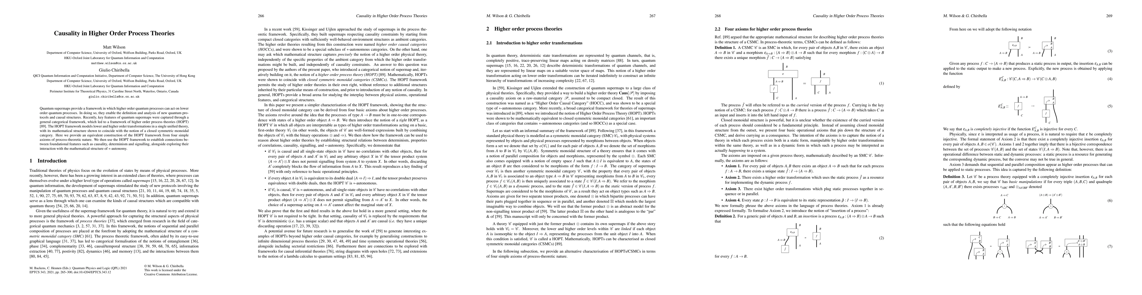 This paper constructs the higher order process theories (HOPT) framework from four basic process-theoretic axioms, unifying lower and higher order quantum transformations. It explores the connections between causality, determinism, and signalling within this framework, and examines their interplay with the mathematical structure of *-autonomy.
