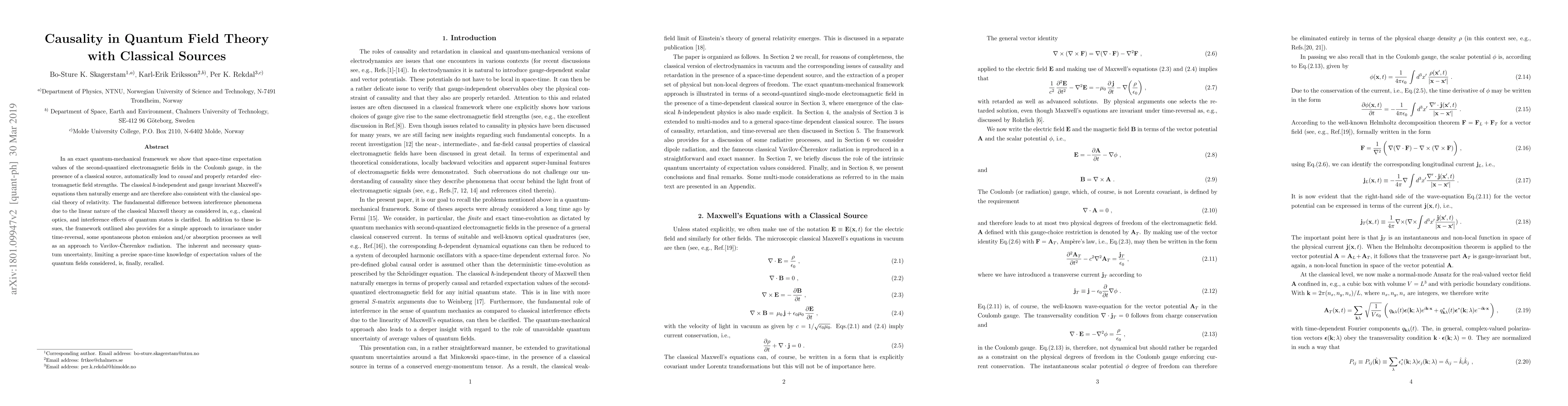 In an exact quantum-mechanical framework, we show that expectation values of the second-quantized electro-magnetic fields in the Coulomb gauge, and in the presence of classical sources, automatically lead to causal and retarded electro-magnetic field strengths. The classical $\hbar$-independent Maxwell's equations naturally emerge from this fundamental quantum-mechanical approach in terms of expectation values of quantum fields, and are therefore also consistent with the special theory of relativity. The fundamental difference between interference phenomena due to the linear nature of the classical Maxwell theory as, e.g., in classical optics, and interference effects of quantum states is clarified. The framework outlined also provides for a simple approach to, e.g., spontaneous photon emission and/or absorption processes as well as to the classical Vavilov-Cherenkov radiation. The inherent and necessary quantum fluctuations, limiting a precise space-time knowledge of expectation values of the quantum fields considered, are, finally, recalled.
