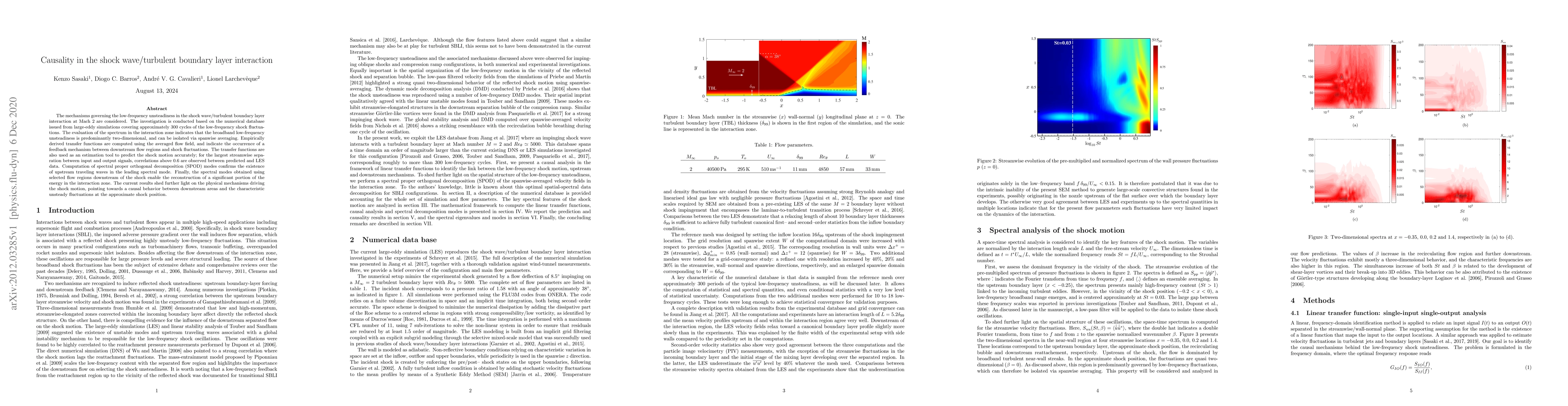 The paper presents a detailed analysis using LES, transfer functions, and SPOD to understand the causal relationship between downstream flow regions and shock motion in shock wave/turbulent boundary layer interactions.