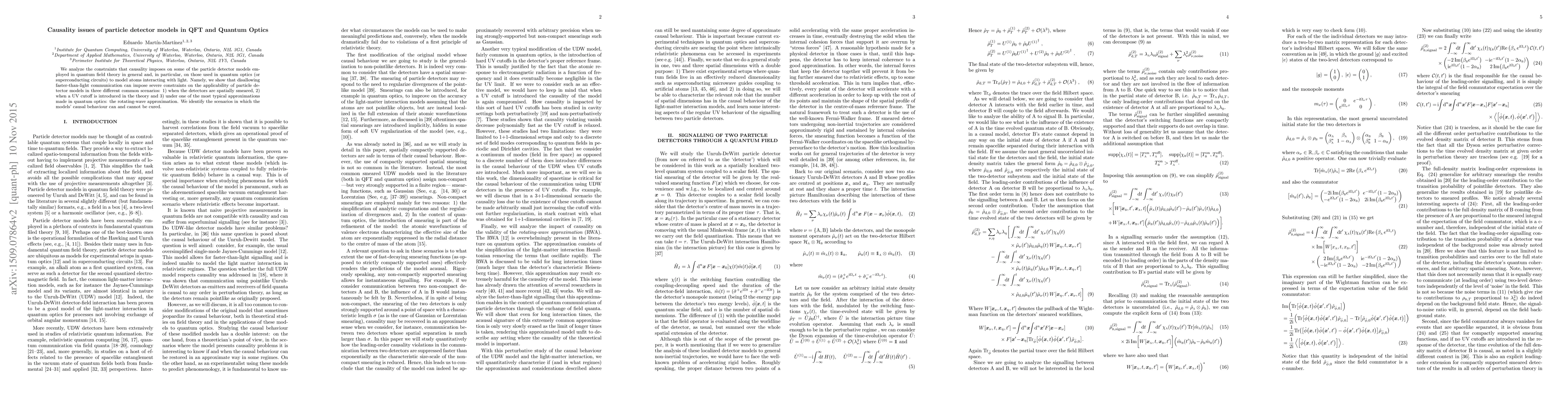 This paper examines how causality constraints affect particle detector models in quantum field theory and quantum optics, particularly focusing on scenarios where faster-than-light communication is prohibited. It identifies limitations in the applicability of these models under conditions such as spatial smearing, UV cutoffs, and the rotating-wave approximation, and determines where causal behavior can be restored.