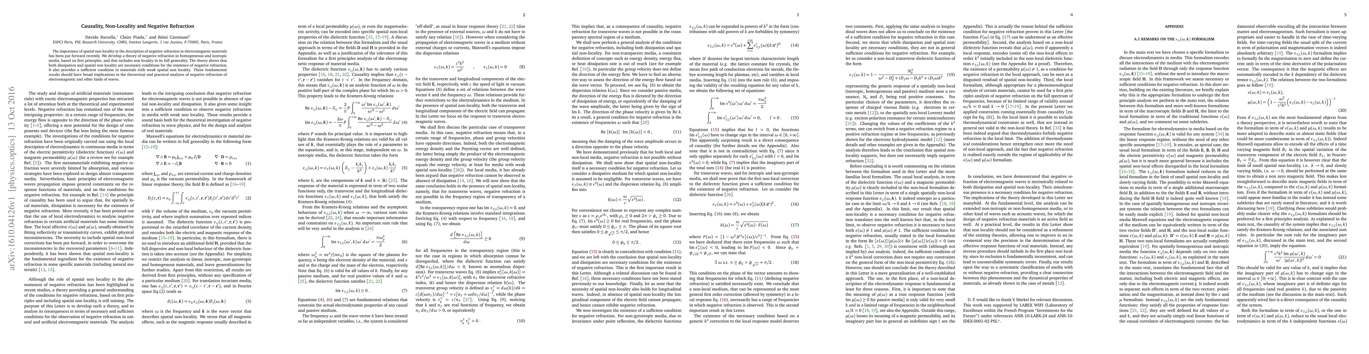 This paper develops a comprehensive theory of negative refraction in electromagnetic materials, emphasizing the necessity of both dissipation and spatial non-locality for its occurrence. The findings provide significant implications for both theoretical understanding and practical applications of negative refraction in various wave types.