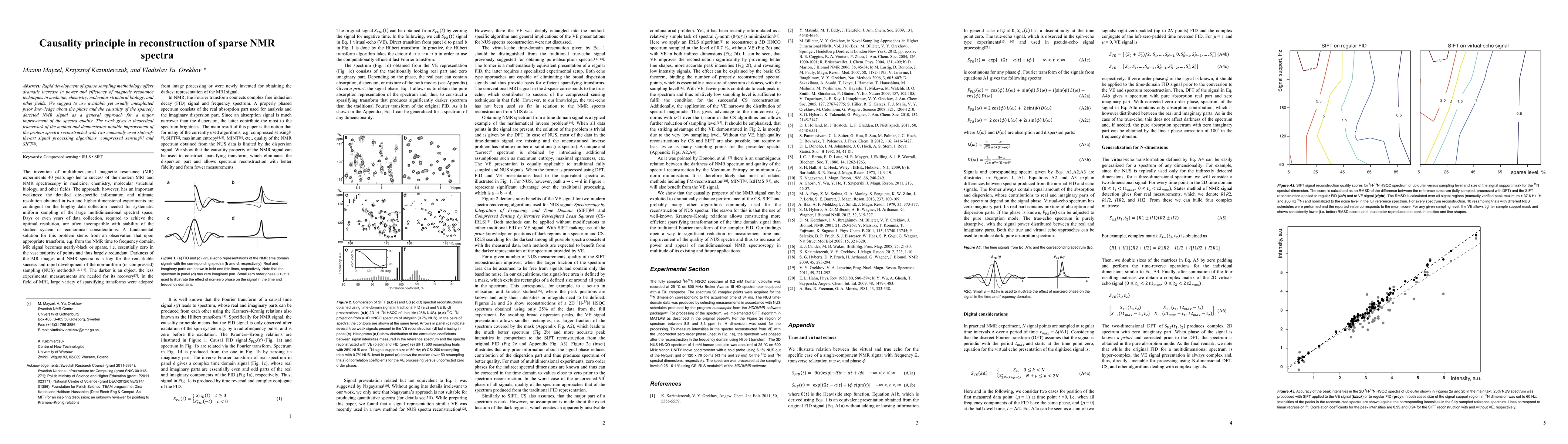 This paper proposes leveraging prior knowledge about phase and causality in sparse NMR signals to enhance spectrum reconstruction quality, presenting a theoretical framework and demonstrating significant improvements in protein spectra using compressed sensing and SIFT algorithms.