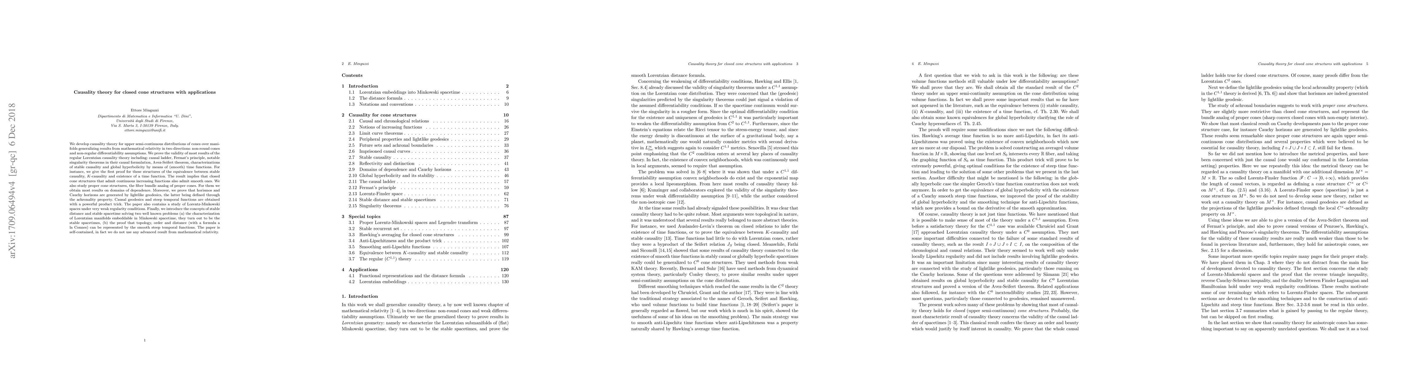 We develop causality theory for upper semi-continuous distributions of cones over manifolds generalizing results from mathematical relativity in two directions: non-round cones and non-regular differentiability assumptions. We prove the validity of most results of the regular Lorentzian causality theory including causal ladder, Fermat's principle, notable singularity theorems in their causal formulation, Avez-Seifert theorem, characterizations of stable causality and global hyperbolicity by means of (smooth) time functions. For instance, we give the first proof for these structures of the equivalence between stable causality, $K$-causality and existence of a time function. The result implies that closed cone structures that admit continuous increasing functions also admit smooth ones. We also study proper cone structures, the fiber bundle analog of proper cones. For them we obtain most results on domains of dependence. Moreover, we prove that horismos and Cauchy horizons are generated by lightlike geodesics, the latter being defined through the achronality property. Causal geodesics and steep temporal functions are obtained with a powerful product trick. The paper also contains a study of Lorentz-Minkowski spaces under very weak regularity conditions. Finally, we introduce the concepts of stable distance and stable spacetime solving two well known problems (a) the characterization of Lorentzian manifolds embeddable in Minkowski spacetime, they turn out to be the stable spacetimes, (b) the proof that topology, order and distance (with a formula a la Connes) can be represented by the smooth steep temporal functions. The paper is self-contained, in fact we do not use any advanced result from mathematical relativity.