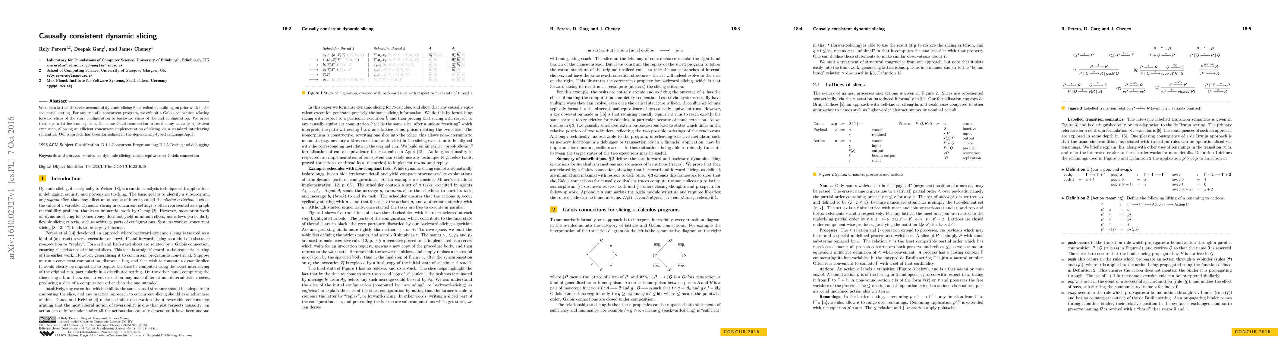 Researchers developed a lattice-theoretic approach to dynamic slicing in concurrent programming, allowing for efficient implementation via standard interleaving semantics. They showed that the same Galois connection arises for any causally equivalent execution, enabling a consistent and concurrent slicing method.
