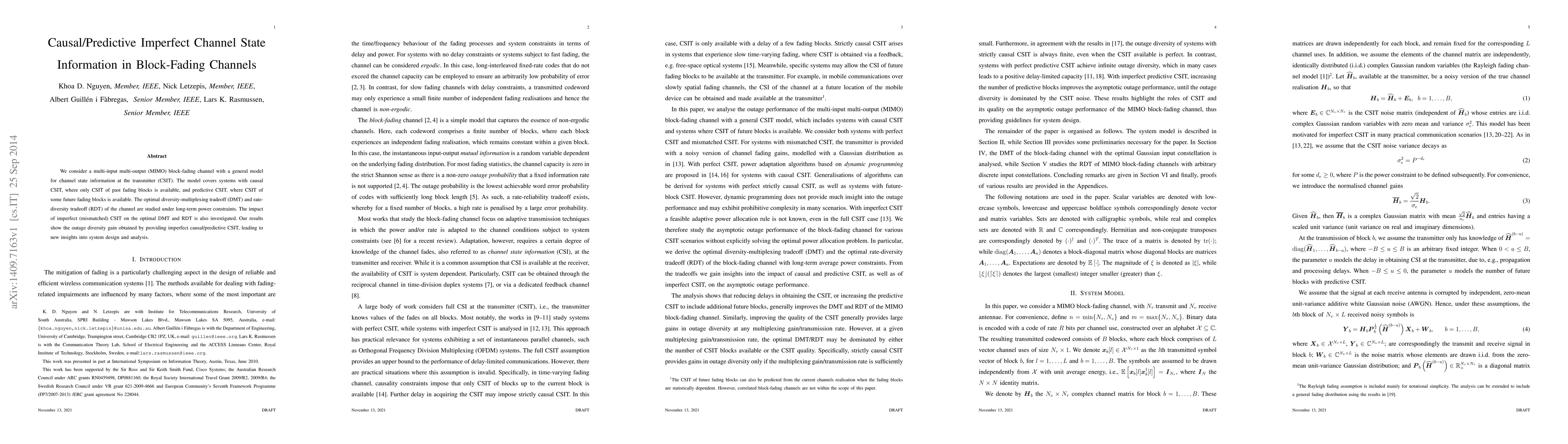 This paper investigates the optimal diversity-multiplexing tradeoff (DMT) and rate-diversity tradeoff (RDT) in multi-input multi-output (MIMO) block-fading channels under imperfect causal and predictive channel state information at the transmitter (CSIT). The study reveals the outage diversity gain from mismatched CSIT, providing new insights into system design and analysis.