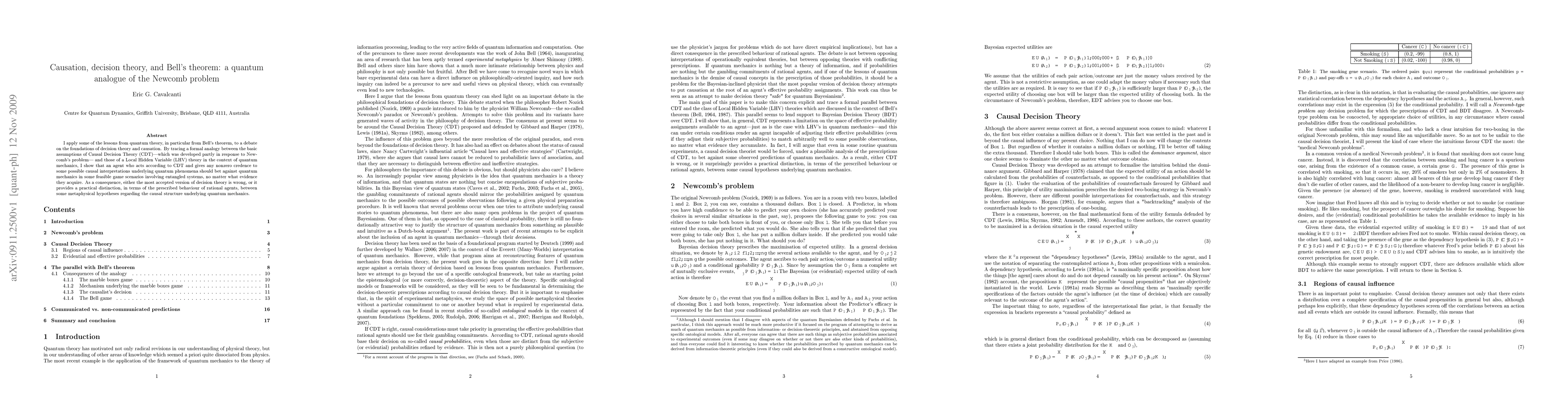 I apply some of the lessons from quantum theory, in particular from Bell's theorem, to a debate on the foundations of decision theory and causation. By tracing a formal analogy between the basic assumptions of Causal Decision Theory (CDT)--which was developed partly in response to Newcomb's problem-- and those of a Local Hidden Variable (LHV) theory in the context of quantum mechanics, I show that an agent who acts according to CDT and gives any nonzero credence to some possible causal interpretations underlying quantum phenomena should bet against quantum mechanics in some feasible game scenarios involving entangled systems, no matter what evidence they acquire. As a consequence, either the most accepted version of decision theory is wrong, or it provides a practical distinction, in terms of the prescribed behaviour of rational agents, between some metaphysical hypotheses regarding the causal structure underlying quantum mechanics.