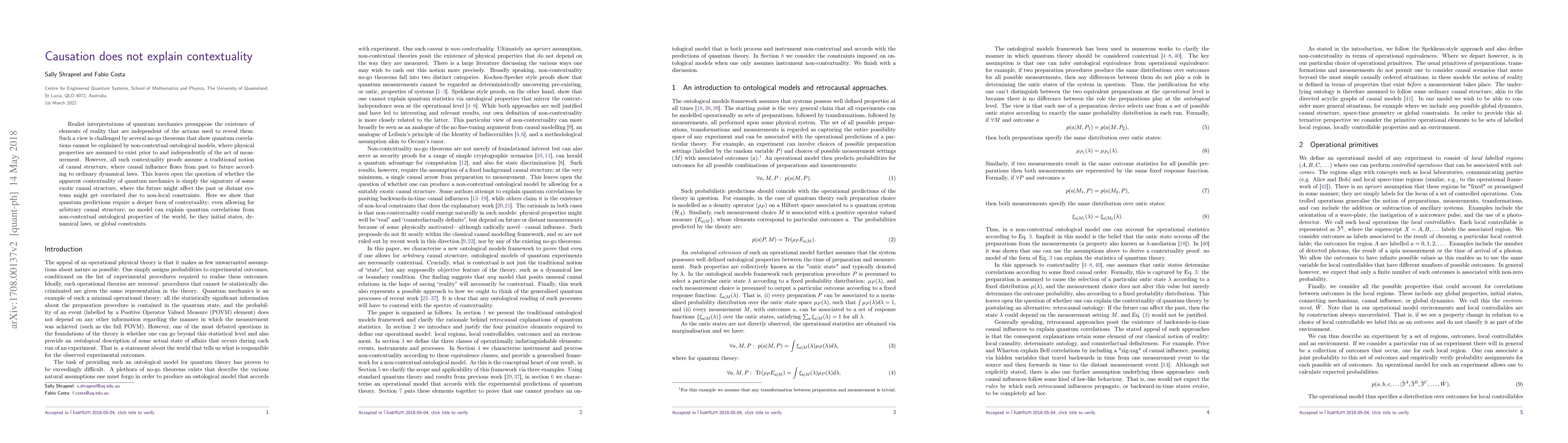 This paper argues that quantum mechanics' contextuality cannot be explained by any causal structure, as no non-contextual ontological model can account for quantum correlations, even if the causal framework is altered. Thus, quantum mechanics fundamentally challenges the notion of independent elements of reality.