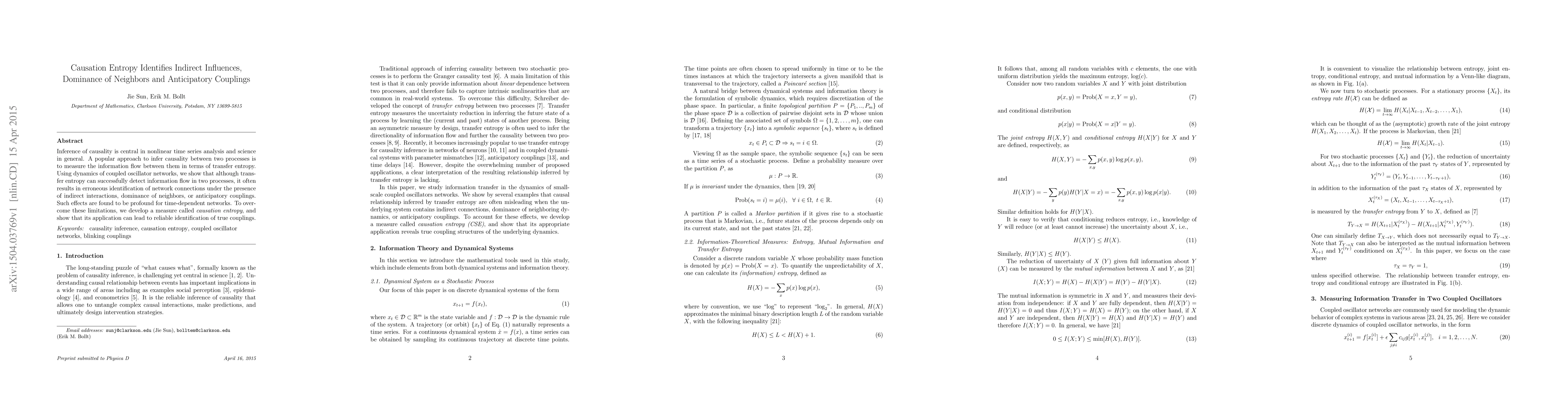 Researchers developed a new measure called causation entropy to improve causal inference in nonlinear time series analysis, overcoming limitations of transfer entropy in detecting indirect interactions and anticipatory couplings.