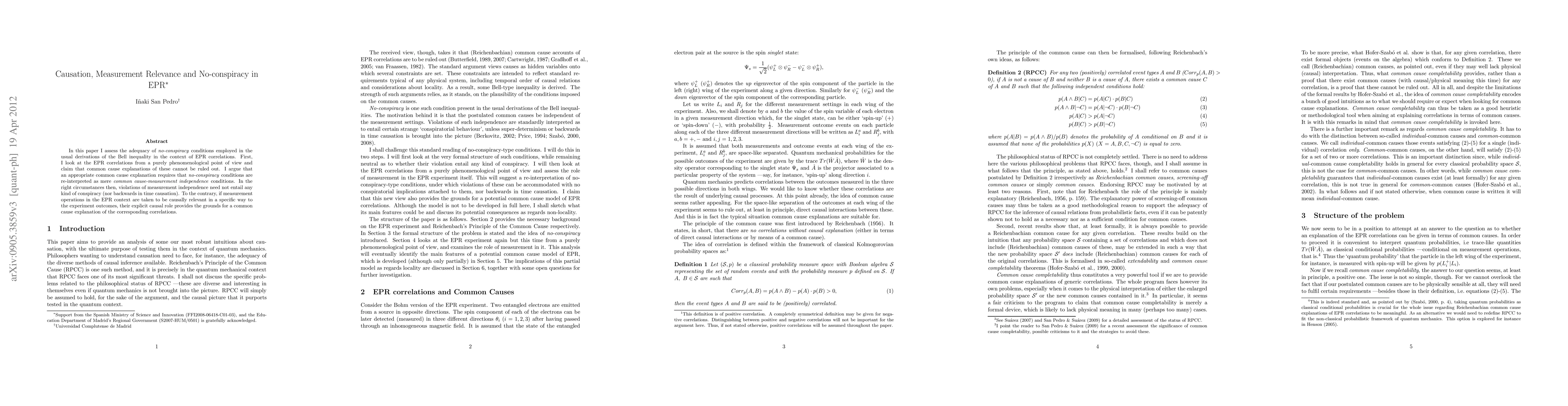 This paper evaluates the role of no-conspiracy conditions in the derivation of the Bell inequality for EPR correlations, arguing that common cause explanations cannot be dismissed. It suggests reinterpreting no-conspiracy conditions as common cause-measurement independence, allowing for violations of measurement independence without implying conspiracies or backward causation.